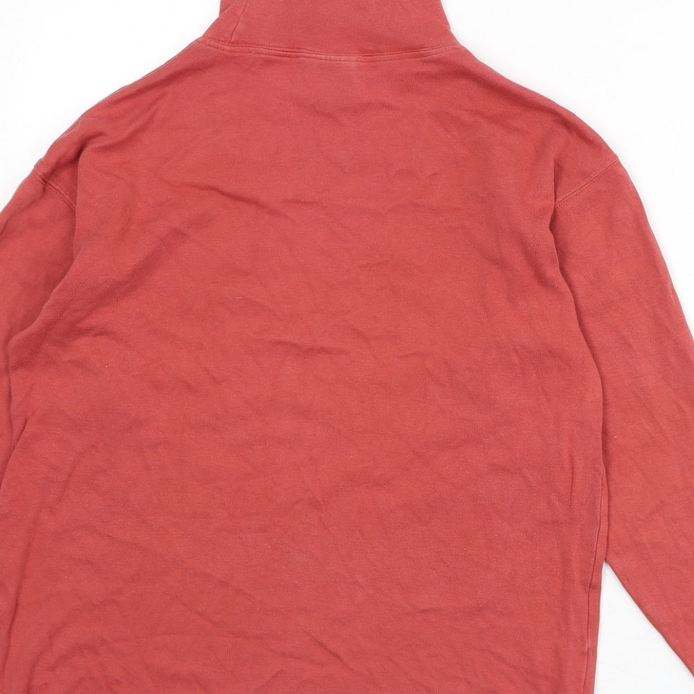 Womens Red Cotton Basic T-Shirt Size S Mock Neck