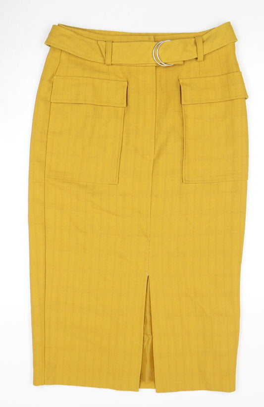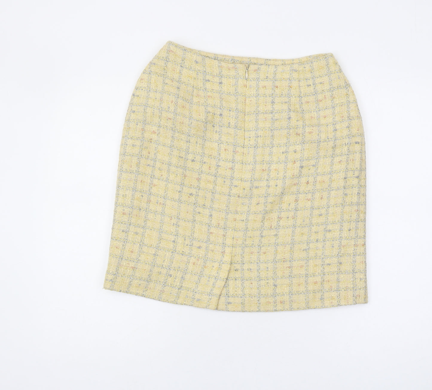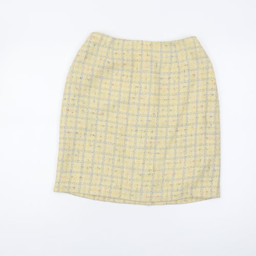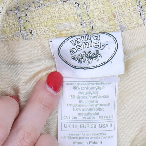 Elevate your wardrobe with this chic Laura Ashley pencil skirt, designed for fashion-conscious women. Crafted from a blend of soft acrylic, viscose, and polyester, this skirt ensures comfort and style. Its yellow check pattern adds a bright and fashionable touch, perfect for various occasions. The UK size 12 fits regular size categories, making it an ideal addition to your collection. Suitable for business or casual settings, this skirt exudes elegance and versatility. Found in excellent condition, showing no visible signs of wear, this pre-owned piece still holds its original charm. Take advantage of this opportunity to own a high-quality skirt from a renowned brand. Ideal for pairing with blouses, jackets, or casual tops, it can easily adapt to your personal style preferences. Purchase today and enrich your fashion lineup with this timeless UK classic.