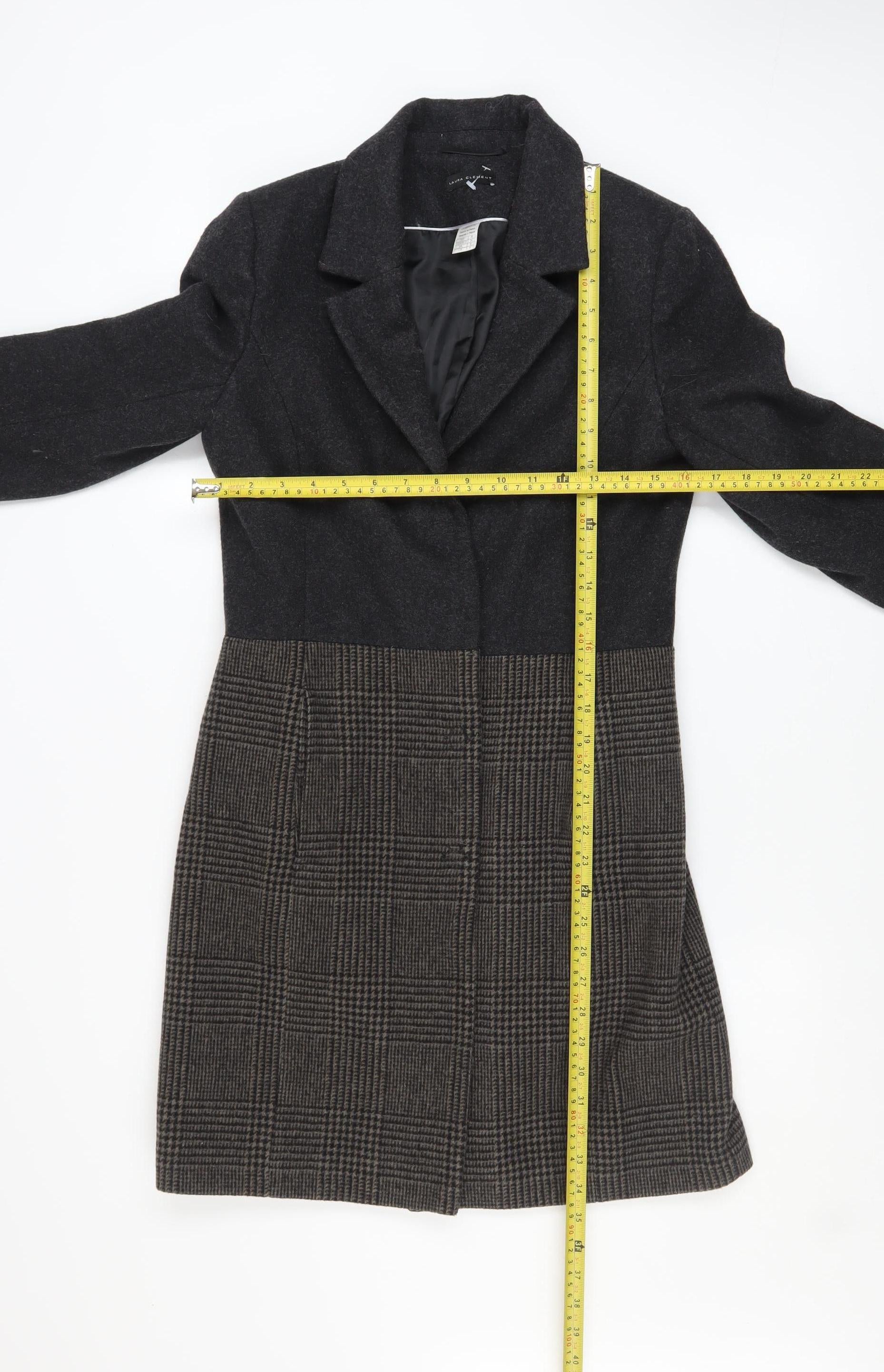 Women's Grey Checked Wool Blend Long Coat Size 8