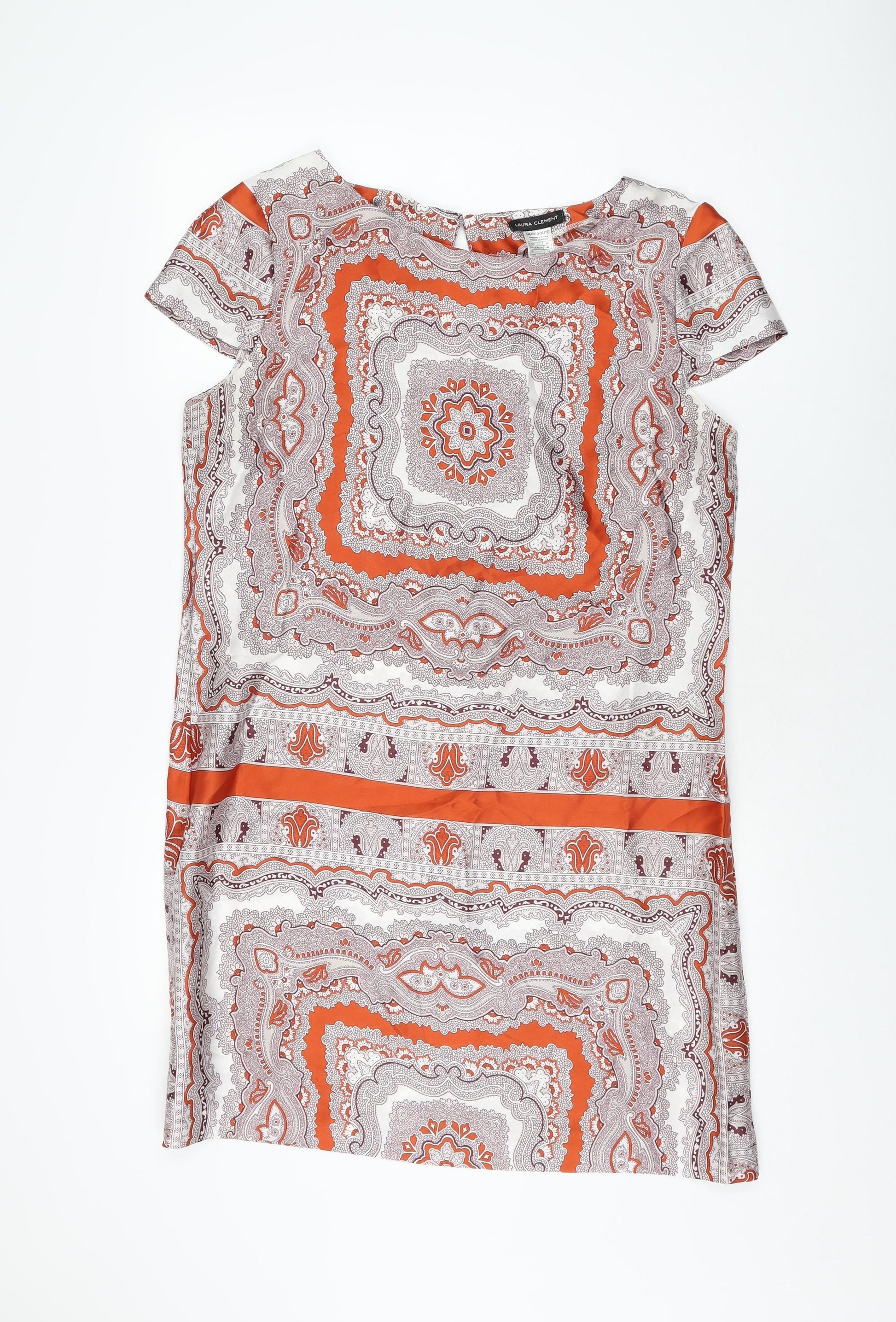 Womens Multicoloured Geometric Polyester Shift Size 14 Boat Neck Button