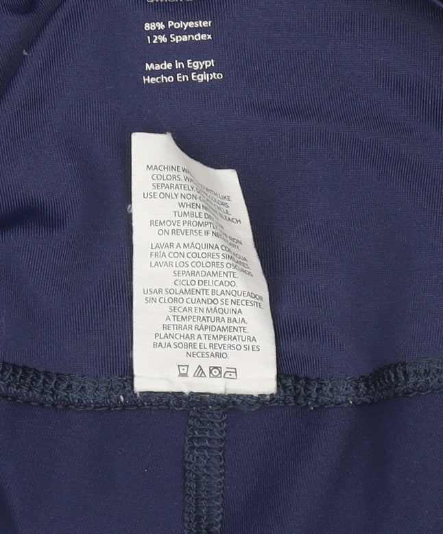 Step up your activewear game with these stylish Layer 8 women’s leggings, designed to combine comfort, breathability, and performance. Crafted from a premium blend of 88% polyester and 12% elastane, these leggings offer an incredibly soft and stretchy feel that moves with your body, making them an ideal choice for yoga, gym workouts, running, or everyday wear. The fabric features Qwick-Dry technology, helping to wick away moisture and keep you cool and dry even during the toughest training sessions. Their deep blue colour gives them a sleek, modern look that matches effortlessly with your favourite workout tops or casual pieces.These full-length ankle leggings are cut with a flattering mid-rise waistband that provides solid support without digging in, allowing you to move freely and confidently. The fit contours naturally to your curves while maintaining flexibility and shape retention through multiple wears and washes. Designed for both utility and comfort, they feature a wide elastic waistband and soft seams that minimise irritation during high-movement activities. Whether you’re heading to a yoga class, going for a jog, or running errands, these Layer 8 leggings deliver both style and practicality.Constructed in Egypt with attention to durability and comfort, they represent the quality performance wear Layer 8 is known for. Their quick-dry, moisture-wicking, and breathable properties make them a go-to option for any season — perfect for spring workouts, summer runs, or layering under cosy gear in autumn. The minimalist design and no-pattern finish ensure they pair easily with a variety of tops and sports bras for a sleek, athletic aesthetic. In excellent pre-loved condition with no visible flaws, these leggings are a smart, affordable addition to your activewear collection, offering long-lasting comfort and style for active women who prioritise performance without compromising on fashion.