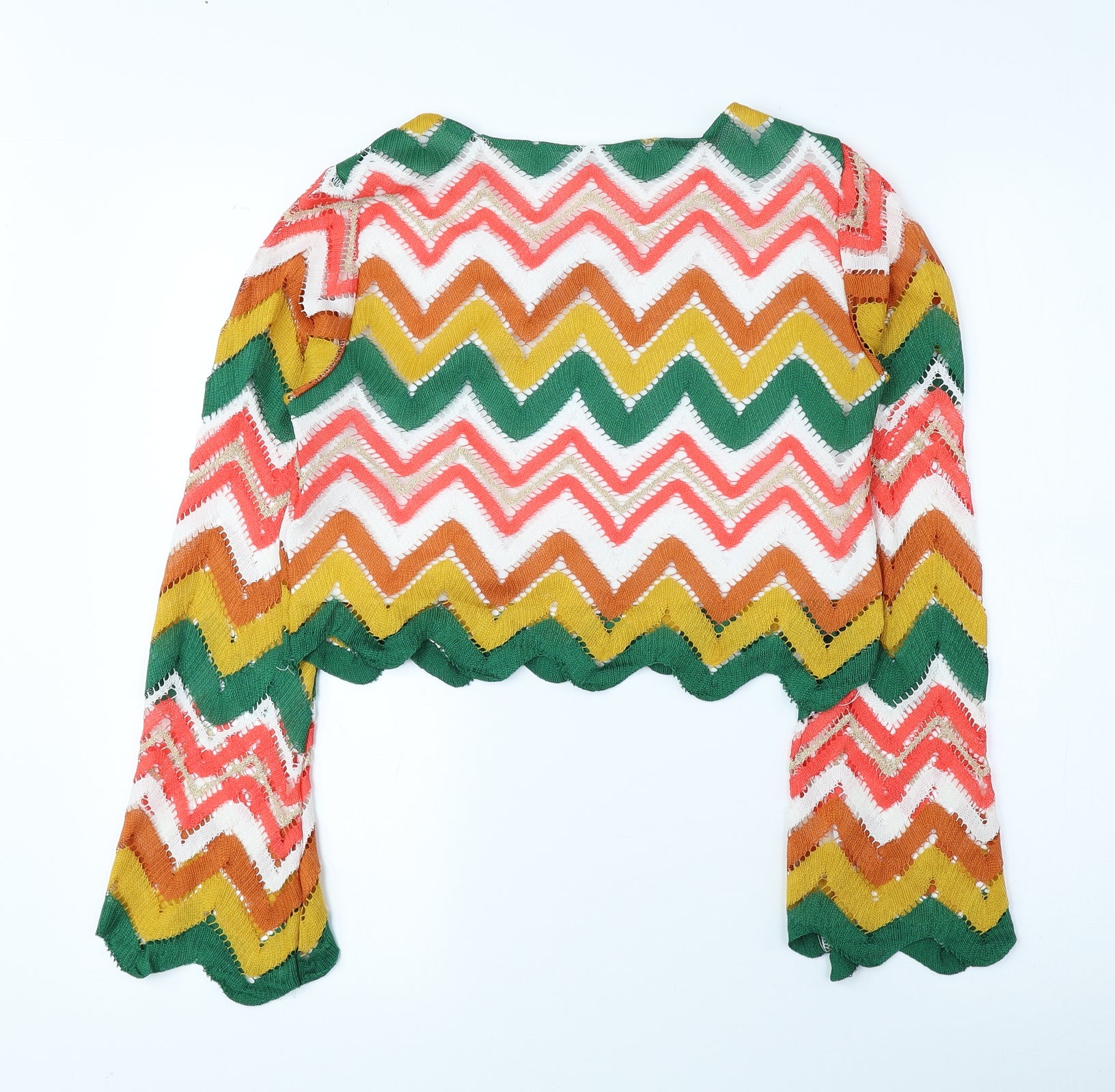 Womens Multicoloured Geometric Polyester Cropped Blouse Size M Round Neck