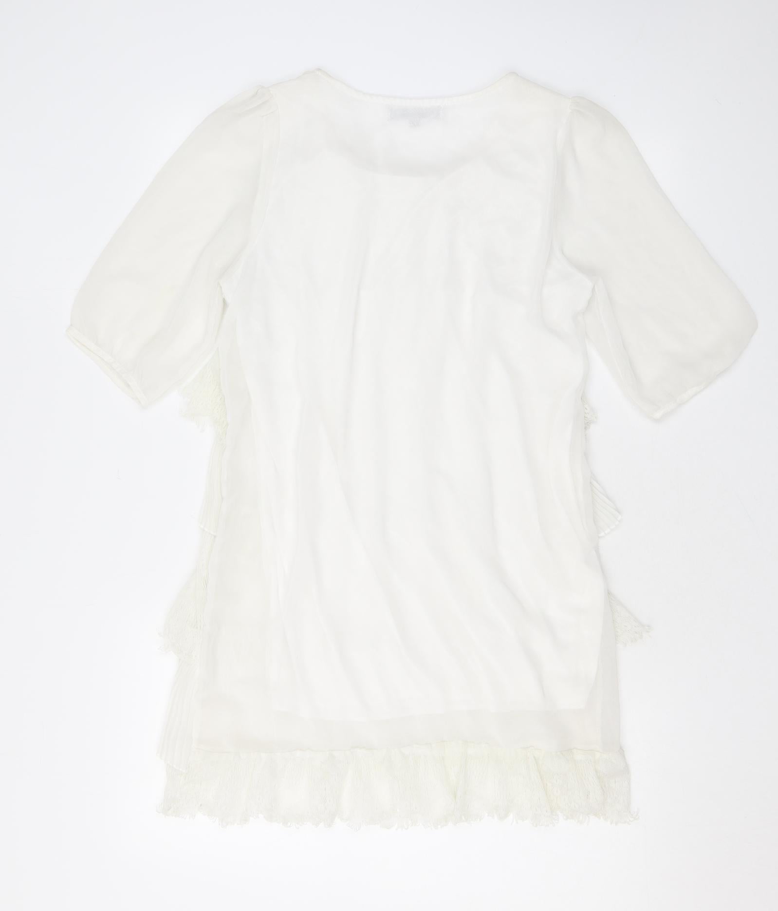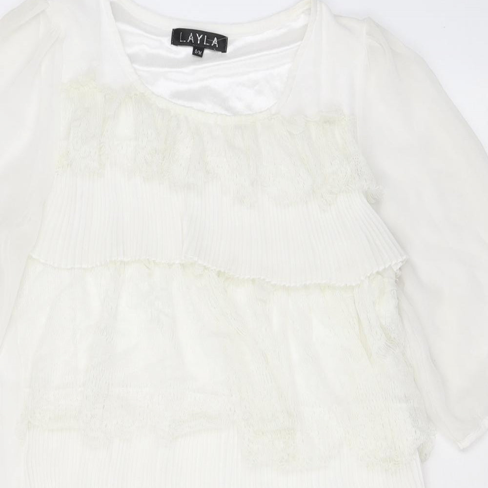 Womens White Polyester A-Line Size S Scoop Neck Pullover - Lace, Ruffles