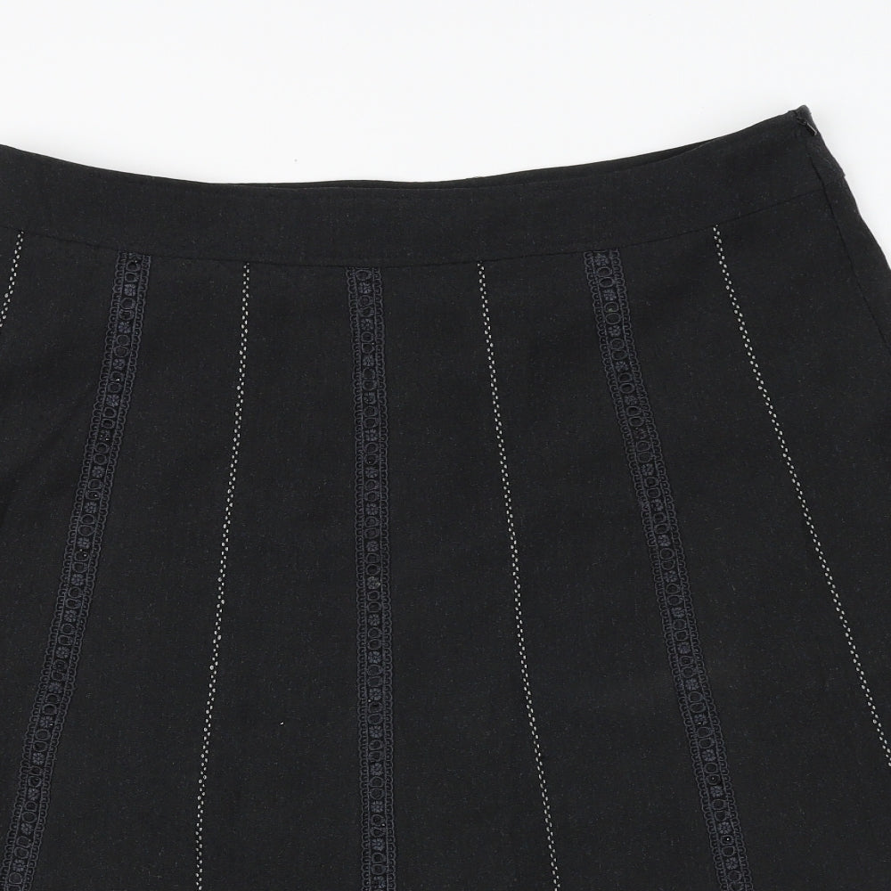 Laura Ashley Women Black Wool A-Line Knee Length Skirt UK18
