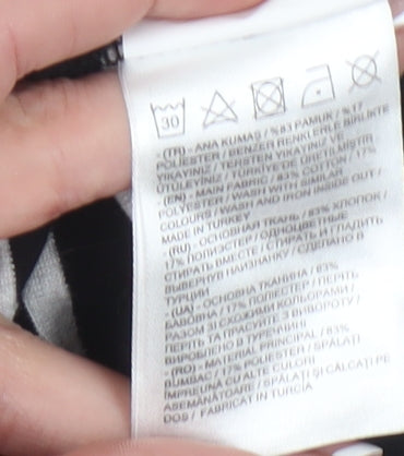 Upgrade your wardrobe with this stylish LC Waikiki women's striped T-shirt. Perfect for any casual occasion, this black and white striped T-shirt features a slim fit and long sleeves, offering both comfort and style. Made from a blend of polyester, viscose, and elastane, its jersey fabric ensures a soft touch and durability. The basic crew neck design makes it a versatile piece for layering in any season.The T-shirt is machine washable, ensuring convenience in garment care. With a classic and fitted sleeve type, this top offers a sleek silhouette, perfectly complementing your casual outfits. Whether for a day out or lounging around, it fits comfortably and provides a chic look, enhancing any ensemble with its timeless striped pattern.Offered in size S, it caters to regular size needs, making it the perfect staple for your wardrobe. Despite showing some gentle use, it remains in excellent condition, with no noticeable damages, ensuring you're investing in quality.Elevate everyday wear with the effortless style of this LC Waikiki basic T-shirt, a must-have for all seasons.