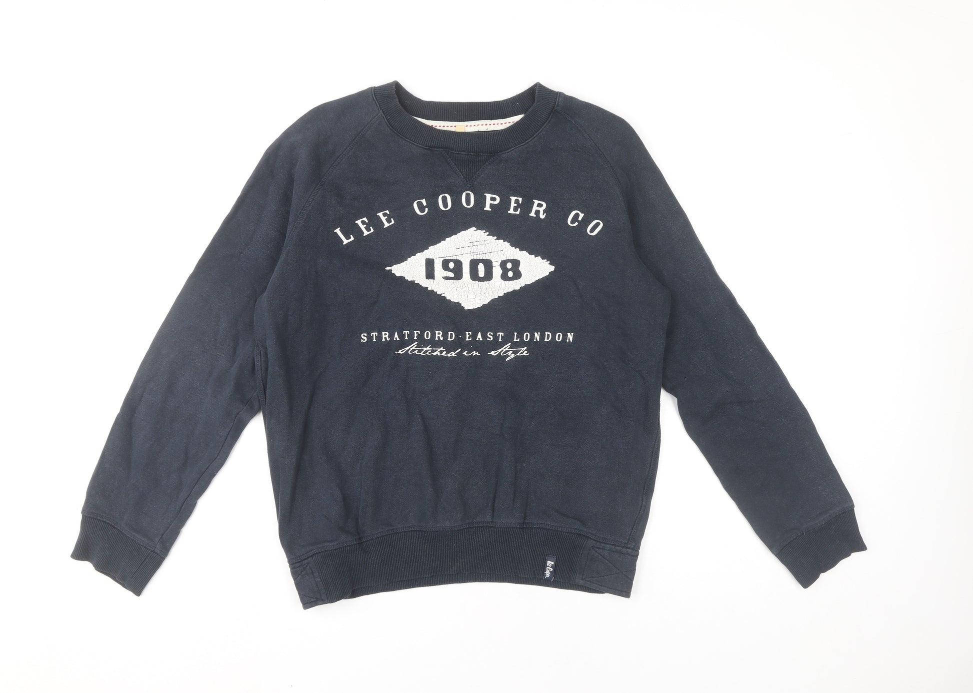 Step out in classic style with this Lee Cooper men's sweatshirt, a timeless piece from the iconic British brand known for its heritage and quality since 1908. Crafted for comfort and durability, this small-sized pullover features a bold 'Lee Cooper Co 1908' graphic with 'Stratford East London' lettering, proudly paying homage to the brand’s roots. The navy blue colourway offers easy pairing with jeans, joggers or casual trousers, making it a versatile staple in any wardrobe. Constructed from a soft fleece fabric blend of 60% cotton and 40% polyester, this sweatshirt provides warmth and comfort during the cooler autumn and winter months, while maintaining breathability. The classic crew neck design and long sleeves ensure a relaxed fit, making it ideal for layering over t-shirts or under jackets. Ribbed cuffs and hem add structure and help keep in warmth, while the high-quality print retains its appeal wash after wash. This sweatshirt channels a casual, collegiate feel with its prominent logo accent and graphic print, making it perfect for weekend wear, laid-back outings or lounging at home. While this is a pre-owned piece in excellent condition with only light general wear, it still retains all the comfort and character expected from a Lee Cooper garment. Its regular fit and understated retro detailing make it a stylish choice for both classic and modern wardrobes. Whether you're a long-time Lee Cooper fan or simply looking for a dependable, stylish sweatshirt to keep you warm through the seasons, this piece delivers both quality and charm. Upgrade your casualwear collection today with this vintage-inspired yet current Lee Cooper logo sweatshirt, perfect for those who value authenticity, comfort and timeless style.