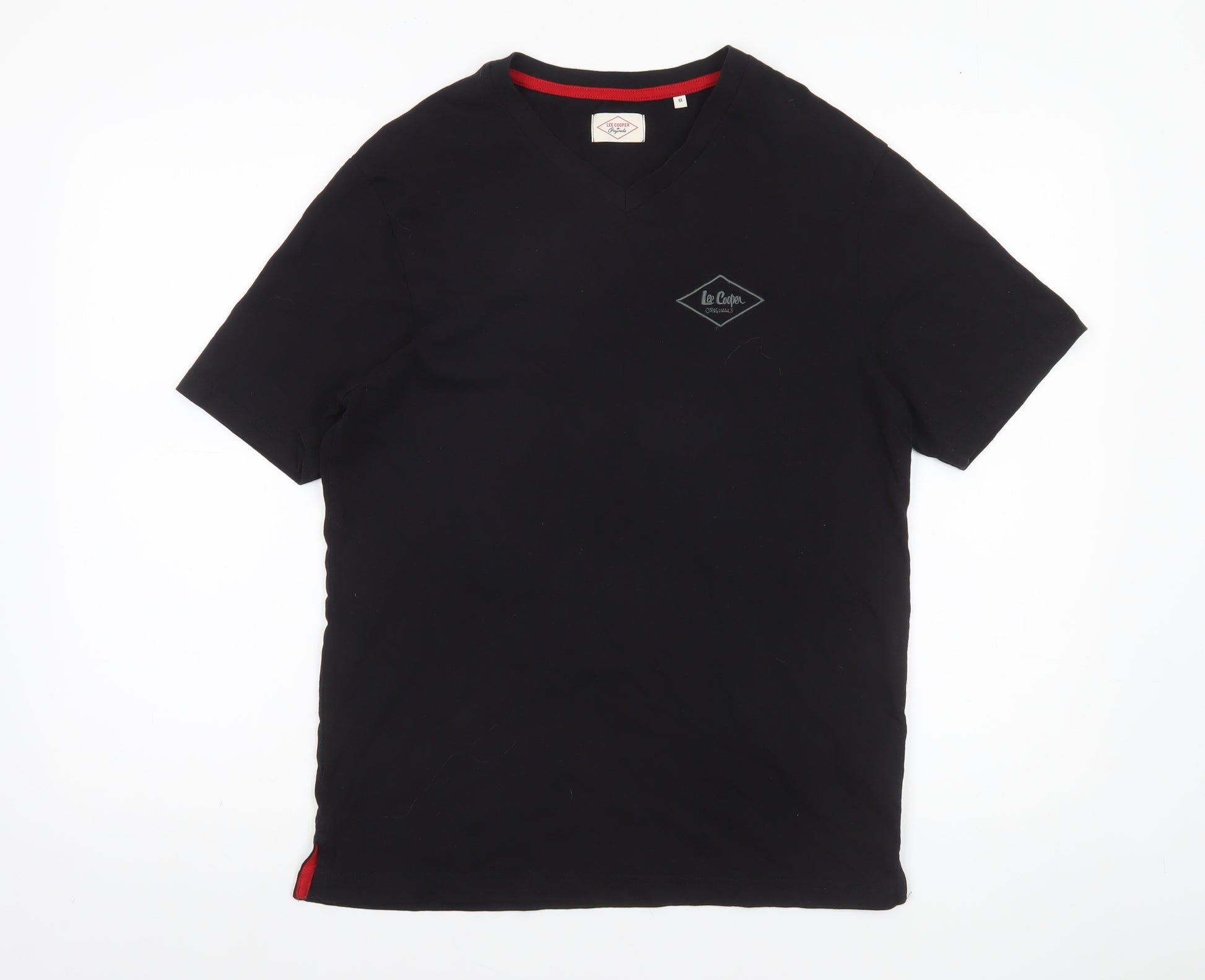 This Lee Cooper Men's Black V-Neck Cotton T-Shirt combines a timeless design with casual comfort, perfect for everyday wear. Made from 100% cotton, it offers a soft and breathable feel that ensures comfort throughout the day, whether you’re heading out or relaxing at home. The V-neckline adds a touch of modern style, while the short sleeves and lightweight jersey fabric make it ideal for layering or wearing on warmer days. The classic black colour is versatile and can be easily paired with jeans, shorts or joggers for a relaxed, laid-back look. Featuring the distinctive Lee Cooper Originals logo on the chest, this tee brings a splash of heritage detailing from one of the UK's most recognised denim and casualwear brands. The high-quality cotton material provides durability and ease of care, allowing for regular machine washing without losing its shape or softness. Its regular fit ensures a flattering drape on the body while maintaining freedom of movement. Designed for all seasons, this T-shirt effortlessly blends practicality and contemporary style, offering a staple piece that every modern wardrobe deserves. Ideal for casual outings, weekends, or relaxed evenings, this Lee Cooper Black V-Neck T-Shirt delivers reliability and understated style in every wear. Whether worn alone or layered under a jacket, this piece provides the versatility and ease that defines true everyday fashion. A great option for men who value comfort, simplicity, and British casual design.