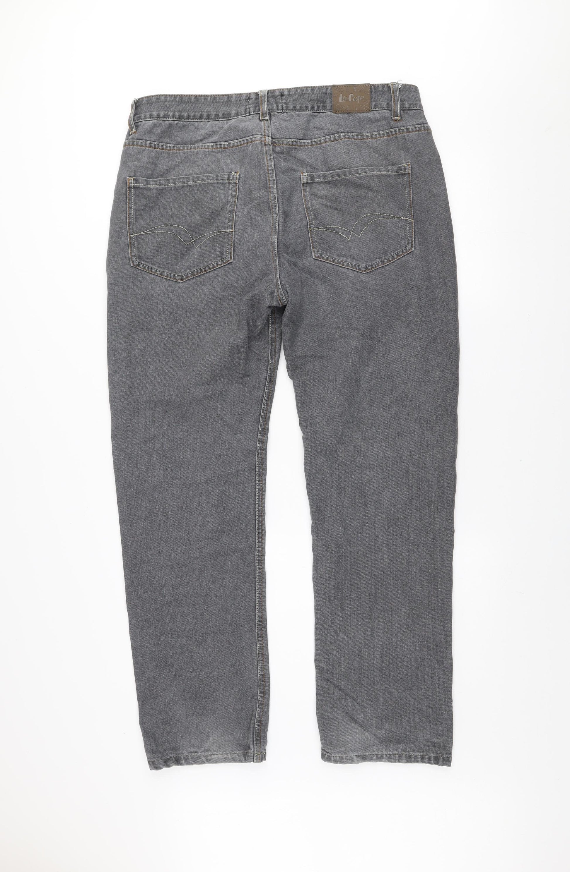 Step into timeless comfort with these Lee Cooper Originals men’s jeans, crafted in a classic grey denim that blends both durability and versatile style. Designed in a regular fit with a straight leg cut, these jeans are perfect for everyday wear, whether paired with your favourite shirt for a smart casual look or layered with a hoodie for relaxed weekends. The pure cotton denim ensures a breathable feel and lasting wearability, making them an excellent choice for men who value both quality and classic design. Featuring the signature Lee Cooper branding, button and zip fastening, and the traditional 5-pocket design, these jeans retain the authentic denim appeal the brand is known for. The mid-rise fit sits comfortably at the waist, providing a natural silhouette that flatters most body types. The durable stitching and neat hem details add to the reliability and attention to craftsmanship, while the soft, washed-grey finish gives a modern edge to this everyday essential. Constructed from 100% cotton, the denim fabric offers strength and comfort while allowing ease of movement, perfect for all-day wear across the seasons. Whether dressing up or keeping things casual, these jeans make an ideal wardrobe staple. Their subtle medium wash makes them versatile enough to pair with both light and dark tones throughout autumn, winter or spring. Conditioned in very good pre-owned shape, they show light fading around the hems but remain strong, clean and ready to style. A dependable addition to any man’s wardrobe, these Lee Cooper jeans deliver both practicality and understated style, capturing everyday British denim heritage with modern comfort and ease.