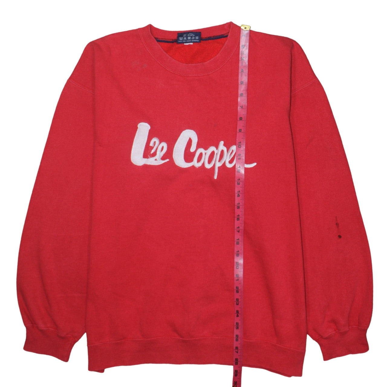 Step out in effortless retro style with this Lee Cooper men’s red sweatshirt, an ideal choice for comfortable, everyday wear. Crafted in a soft cotton blend with a brushed fleece interior, this pullover provides both warmth and breathability, perfect for layering during autumn, spring, and winter. The bold red hue showcases the brand’s iconic Lee Cooper logo printed across the chest, offering a touch of vintage charm and casual appeal. Designed with a comfortable regular fit and classic crew neckline, this sweatshirt strikes the right balance between comfort and timeless streetwear aesthetics. The ribbed cuffs and hem help retain shape while delivering a snug finish. Its all-season wearability makes it a versatile essential, suited for relaxed weekends, casual outings, or layering under a jacket for added warmth. Despite a small mark on the right sleeve, the garment remains in good vintage condition with minimal signs of wear, maintaining its classic appeal. This piece is perfect for those who appreciate well-made British casualwear with a heritage style edge. Machine washable for easy care, it ensures lasting comfort and convenience. Ideal for everyday wear, commuting, or casual leisure occasions, the sweatshirt reflects Lee Cooper’s legacy of quality craftsmanship and understated design. Whether paired with jeans or joggers, this piece delivers an effortlessly cool look that works in any casual setting. Add this standout Lee Cooper men’s red sweatshirt to your wardrobe for a timeless addition that combines comfort, durability, and a bold branded finish. A true must-have for fans of classic British casual fashion and retro sportswear style.
