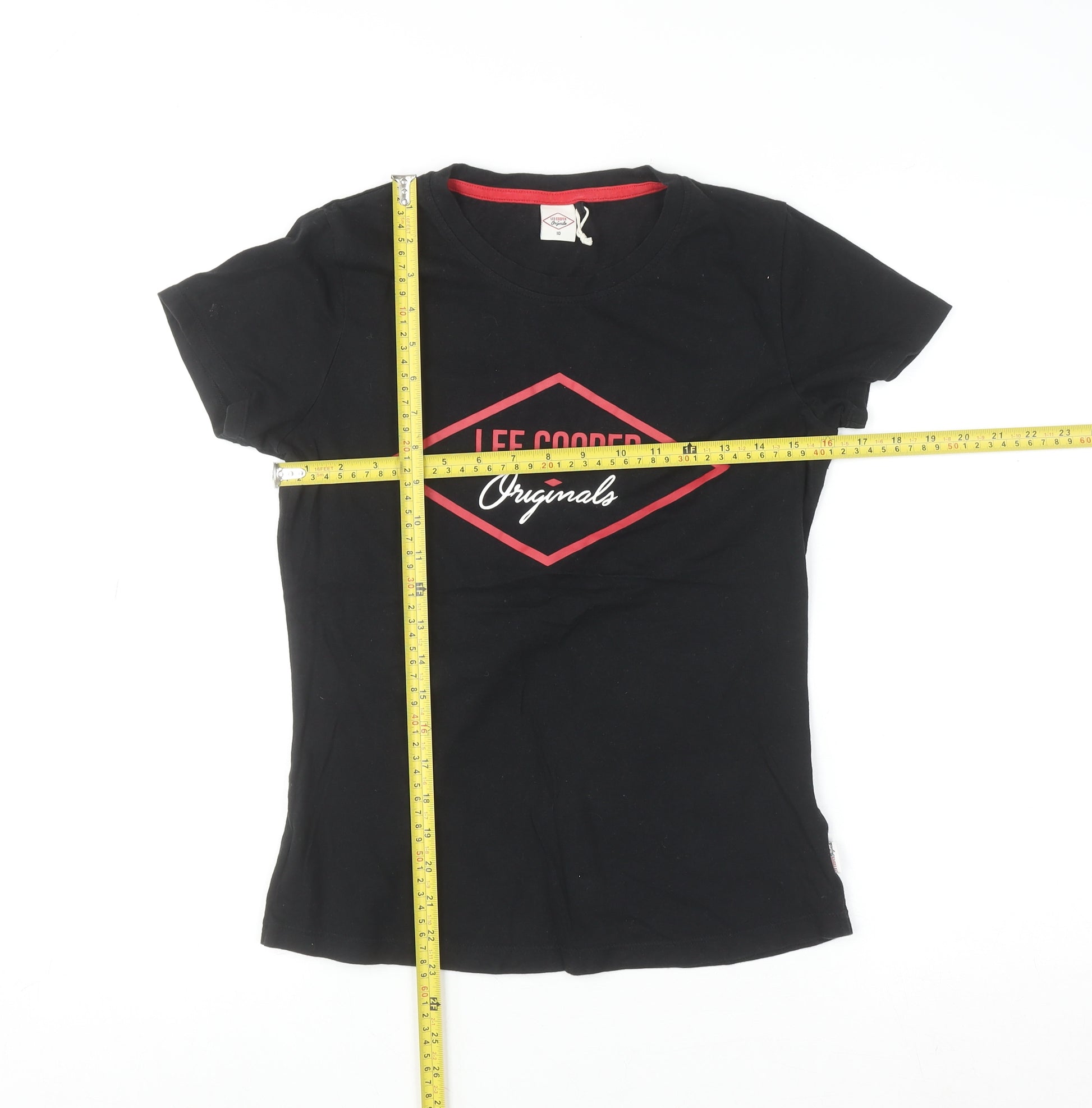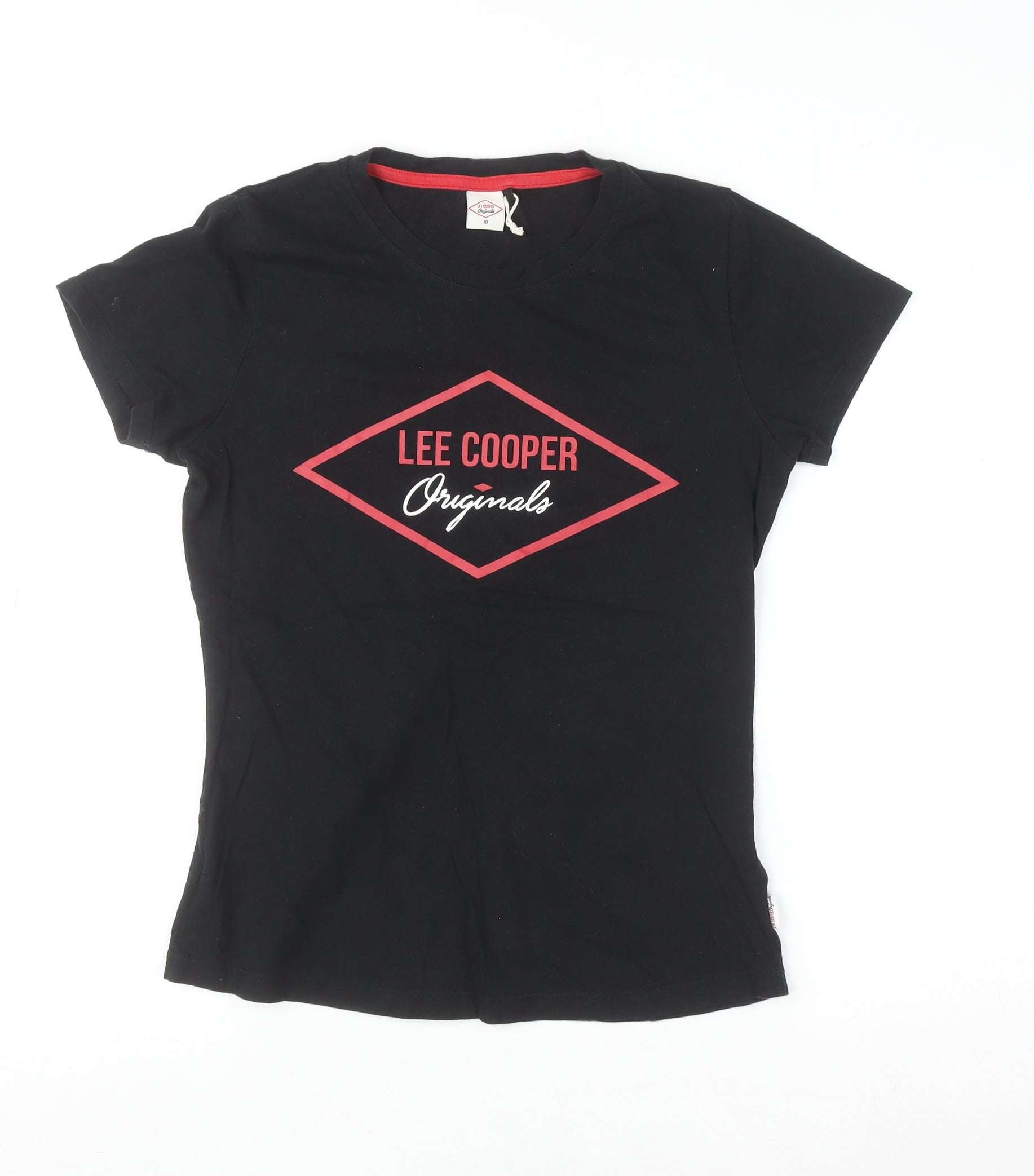 This Lee Cooper Originals women's black T-shirt combines classic casual styling with the quality craftsmanship the brand is known for. Made from soft and breathable 100% cotton, this regular fit top ensures all-day comfort whether you're running errands, relaxing at home, or out with friends. The tee features a bold red Lee Cooper Originals logo graphic across the front, adding a touch of iconic vintage appeal. Its short sleeves, crew neckline, and simple pullover design make it an easy go-to piece that pairs effortlessly with jeans, skirts, or shorts. The pure jersey cotton fabric provides a lightweight and breathable feel, ideal for layering or wearing on its own during spring, summer, or early autumn. The shirt’s black solid colour lends itself well to both casual and laid-back outfits, while the clean silhouette flatters various body types. This top remains in excellent condition with no visible marks or defects, showing only minimal signs of gentle wear. Perfect for women who appreciate a touch of retro style and versatile wardrobe essentials, this Lee Cooper T-shirt blends everyday ease with timeless design. Easy to care for and machine washable, it’s a great choice for practical yet stylish dressing. Whether you’re a fan of iconic British denim heritage or simply in search of a reliable cotton T-shirt with a classic fit, this black Lee Cooper tee makes a fantastic addition to your wardrobe. A comfortable fit, breathable fabric, and well-known brand quality make this top a valuable find for casual wear lovers and street-style enthusiasts alike.