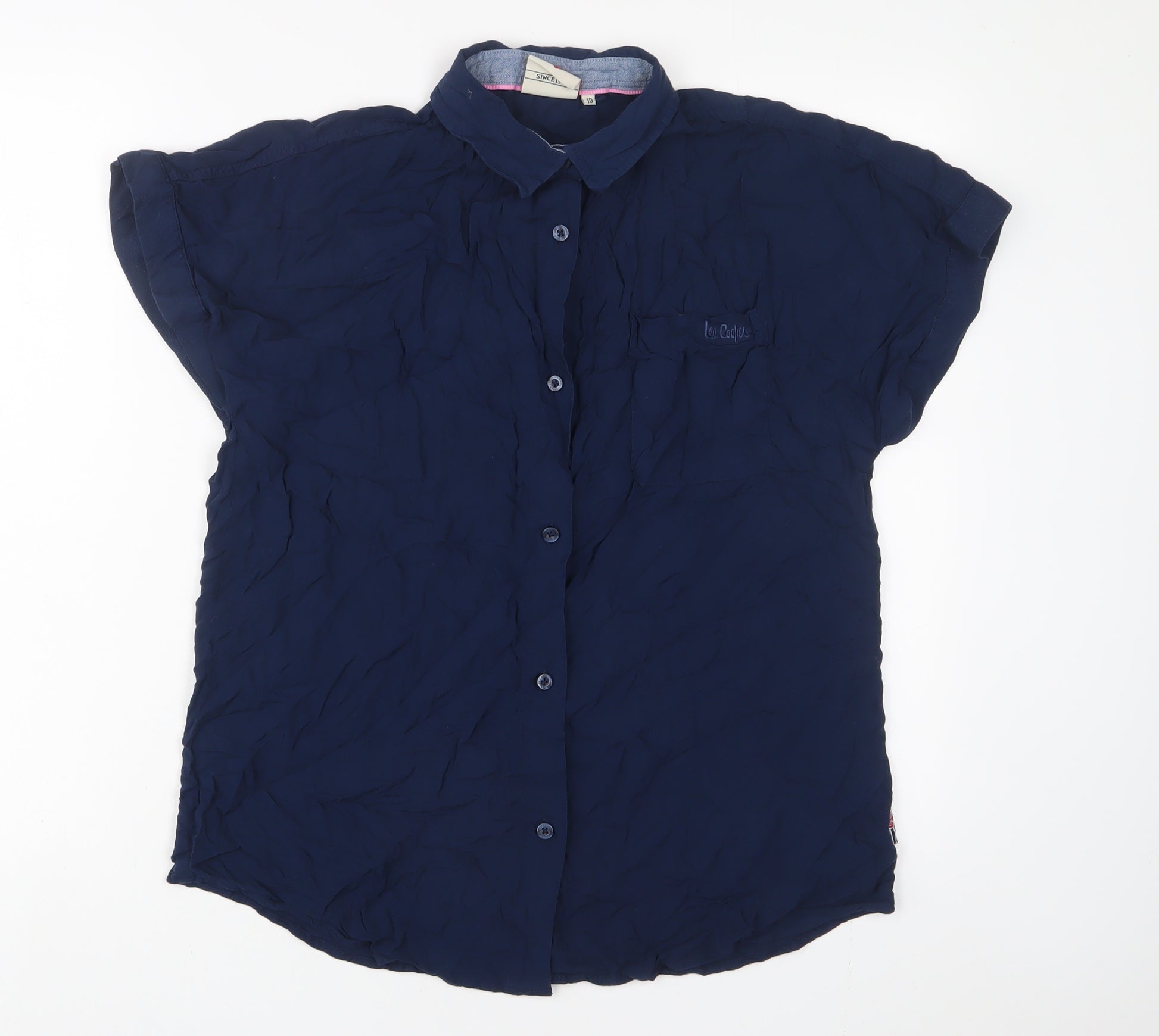 Womens Blue Viscose Basic Button-Up Size 10 Collared