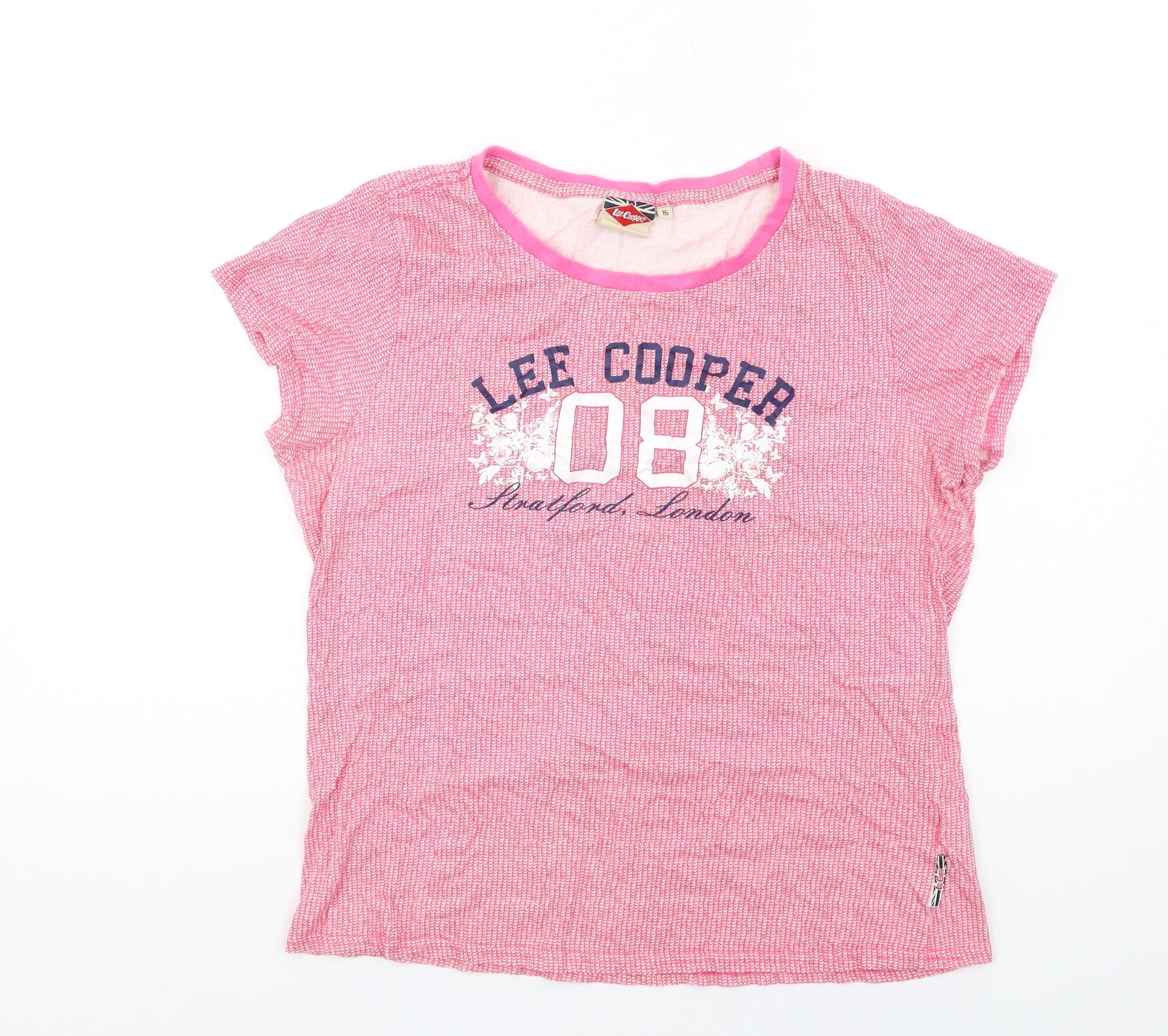 Womens Pink Geometric Cotton Basic T-Shirt Size 16 Round Neck