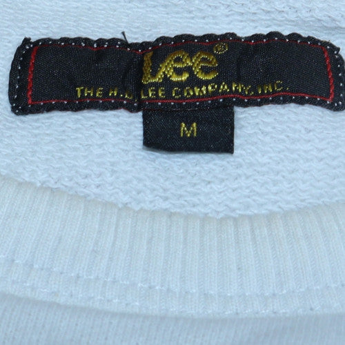 This Lee men's white pullover sweatshirt embodies casual comfort with a timeless appeal. Crafted entirely from 100% cotton jersey fabric, it delivers a soft, breathable fit that's ideal for all seasons. The classic crew neck design and long sleeves make it a versatile layering piece for autumn, spring, and cooler winter days. Featuring the bold Lee logo across the chest in black print with red stripe accents, it presents a striking yet minimalist style that pairs effortlessly with jeans, joggers, or chinos. The ribbed cuffs and hem provide a snug, durable finish, ensuring the sweatshirt retains its structure after repeated wear. Its medium size offers a regular fit, making it both flattering and comfortable for everyday use. The sweatshirt is machine washable for easy care, suited to busy lifestyles. While in very good pre-owned condition, there is a light stain on the cuff that does not detract from its smart overall appearance. Whether relaxing at home or out and about, this Lee sweatshirt brings classic American casualwear energy into your wardrobe. Perfect for men who value comfort, quality, and understated style, it’s an excellent choice for daily wear. Add this iconic Lee logo piece to your collection for effortless, laid-back fashion with a heritage touch.