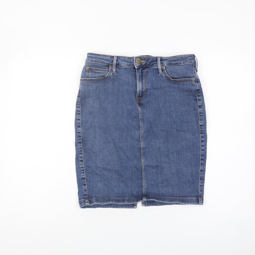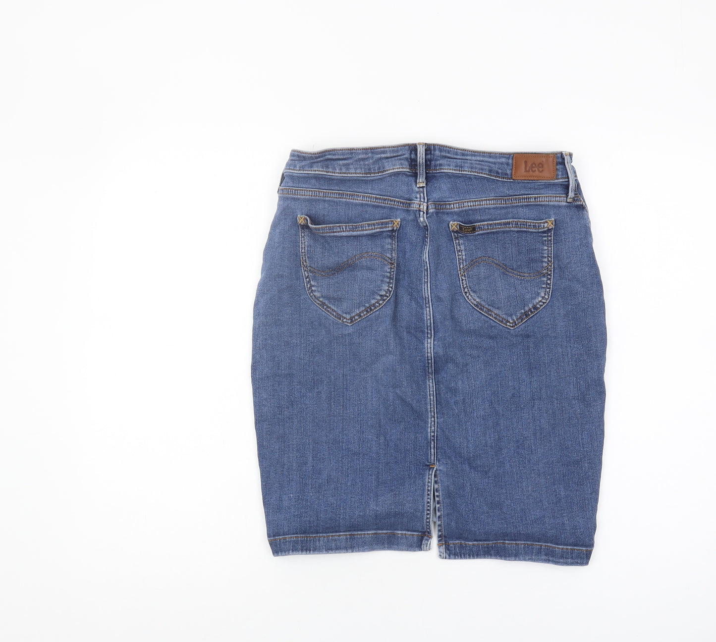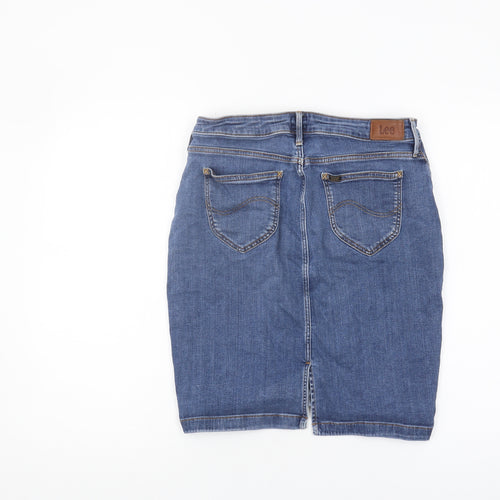Introducing a timeless classic from Lee, this women's denim pencil skirt is perfect for any casual occasion. Designed to suit all seasons, its sleek blue colour and straight pencil style is a versatile addition to any wardrobe. Crafted from high-quality denim, composed of 98% cotton and 2% elastane, this skirt ensures both comfort and flexibility. Its stretch feature allows for ease of movement, making it an ideal choice for daily wear. The skirt comes with a practical button and zip closure, adding to its casual charm. Although gently worn, it remains in excellent condition, with minimal signs of wear and no original tags attached. Pair it with a simple top or a more tailored blouse for a polished look that effortlessly bridges the gap between casual and chic. Don't miss out on this stylish yet comfortable staple piece that promises to become a firm favourite in your fashion repertoire.