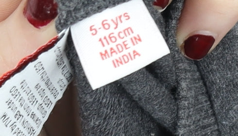 Add a touch of action and adventure to your little one’s wardrobe with this LEGO Boys Grey Ninjago Long Sleeve Pullover T-Shirt in size 5–6 Years. Crafted from a soft cotton and polyester blend, this comfortable jersey top keeps kids cosy while allowing them to move freely during playtime. The bold front graphic features a fan-favourite Ninjago character with the text 'I Am A Ninja', making it perfect for fans of the LEGO universe and superhero-themed clothing. The breathable knit fabric ensures all-day comfort, while the ribbed cuffs and hem add a snug fit that stays in place through active wear. Its easy pullover design means dressing is hassle-free, and the lightweight material makes it suitable for layering in cooler months or wearing alone in spring or autumn. The versatile grey shade works brilliantly with jeans, joggers or shorts, offering a casual look ideal for everyday wear, school, or playdates. Although gently worn with minor pilling from previous use, this top remains in very good condition and ready for more fun adventures. A must-have addition for any young Ninjago fan’s wardrobe, perfect for gifting or everyday wear. Machine washable for easy care, this LEGO T-shirt combines kids’ favourite characters with quality comfort. Pick this up as a practical, fun, and stylish favourite that will surely become a go-to piece for every budding hero’s day-to-day outfits.