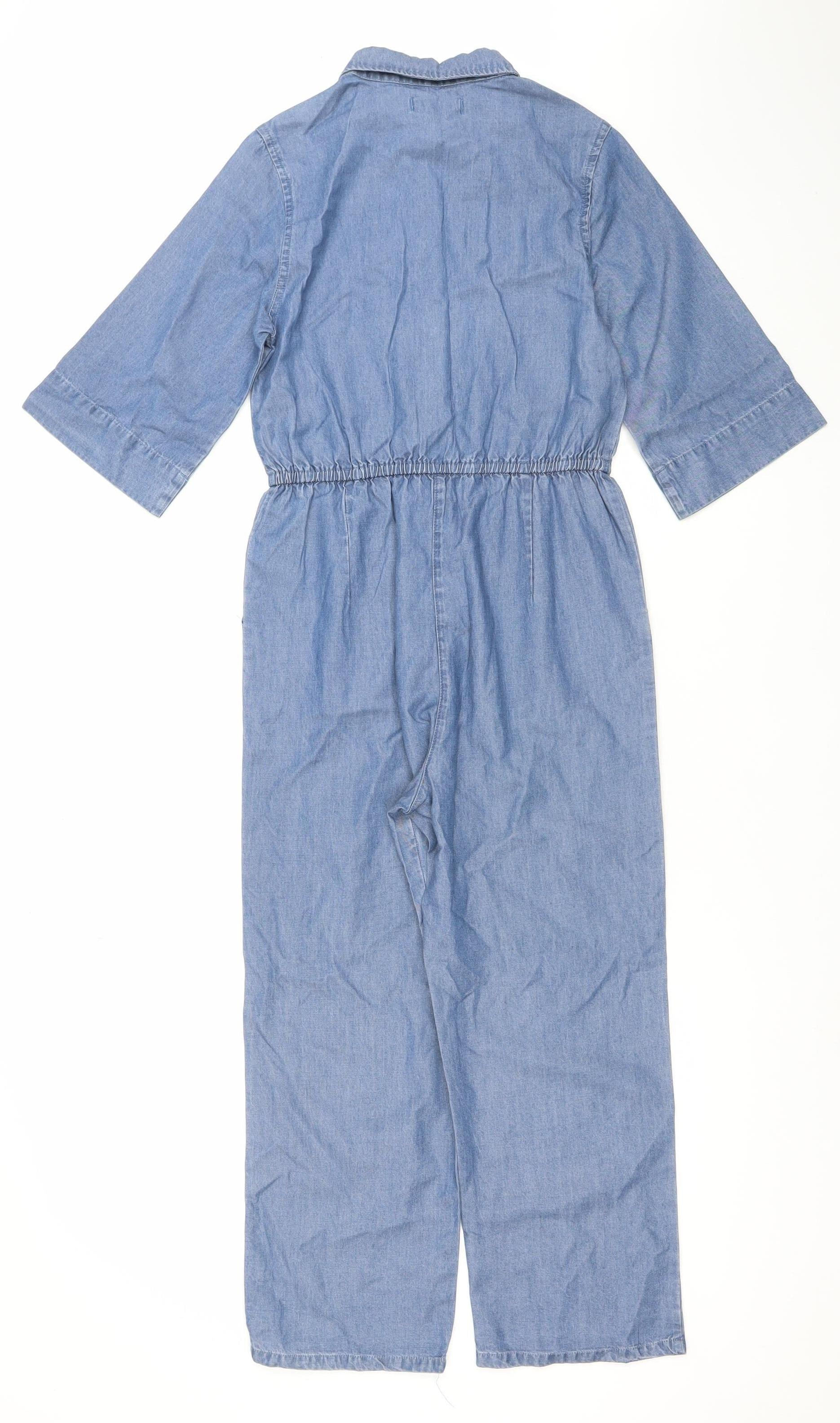 Girls Blue Chambray Cotton Jumpsuit 8-9 Years Buttoned