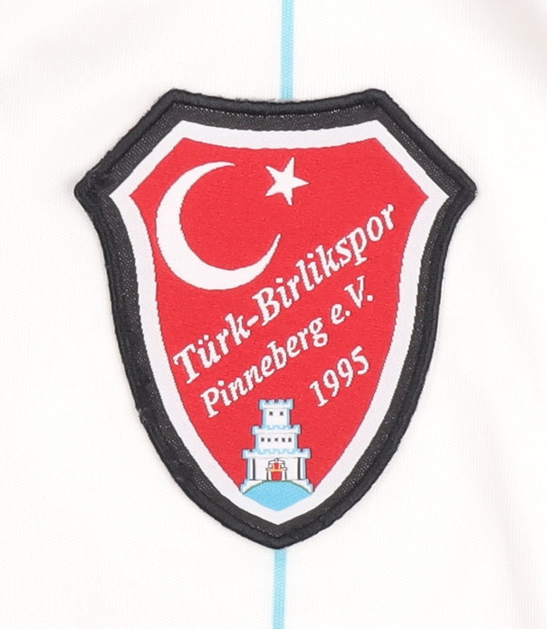 Dive into the world of football passion with this exquisite Lescon branded football shirt, perfect for any dedicated fan or aspiring player. Crafted with precision, this medium-sized shirt fits seamlessly, ensuring comfort as you support your favourite team. The brilliant white fabric adorned with sky blue accents brings a sense of freshness and style. With the esteemed Türk-Birlikspor Pinneberg badge proudly displayed, this shirt showcases your allegiance loudly and clearly. Yasin K.'s signature number 39 adds a personal touch that makes this piece truly special. Ideal for both match days and casual outings, its short sleeves are perfect for warm weather wear. In excellent condition, you can expect nothing but high quality. This fan-favourite is a must-have addition to your football wardrobe—grab yours before it's gone!