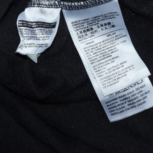 Upgrade your casual wardrobe with this classic Levi Strauss & Co women's hoodie in timeless black. Designed for effortless comfort and versatile style, this pullover hoodie is made from a soft blended fabric featuring a premium cotton-polyester mix that ensures breathability and durability. The hood includes an adjustable drawstring, allowing for a customised fit, while the long sleeves and ribbed cuffs help to lock in warmth during cooler months. The standout feature of this hoodie is the vibrant multicoloured Levi Strauss logo embroidered across the chest, which adds a bold pop of personality and colour to the sleek monochrome design. Tailored in an extra small (XS) size, this hoodie offers a comfortable regular fit suitable for women or teens who favour a laid-back, slightly relaxed silhouette. The front kangaroo pocket provides a handy space for warming hands or storing small essentials. Ideal for layering, this hoodie is perfect for all seasons—especially spring and autumn—whether you’re lounging at home, running errands, or styling it with your favourite pair of jeans for a casual outing.Crafted in Turkey with Levi’s renowned quality, this hoodie prioritises comfort, stylish simplicity, and everyday reliability. The easy-care fabric allows for machine washing, maintaining the shape and colour after repeated wear. Whether for walking, gym sessions, or relaxed weekends, this Levi Strauss hoodie brings lasting quality to your wardrobe staples. In excellent pre-owned condition, this piece shows minimal signs of wear, ready to deliver warmth, ease, and unmistakable Levi's style. Add it to your collection for an effortlessly cool and modern streetwear look that carries the heritage of Levi Strauss with every wear.