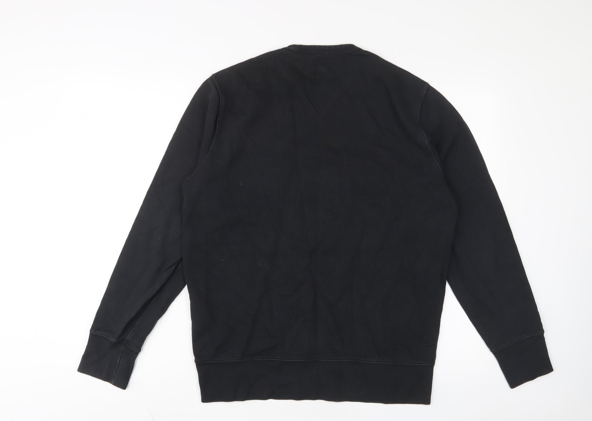 Mens Black Cotton Pullover Sweatshirt Size S - Logo, Embroidered