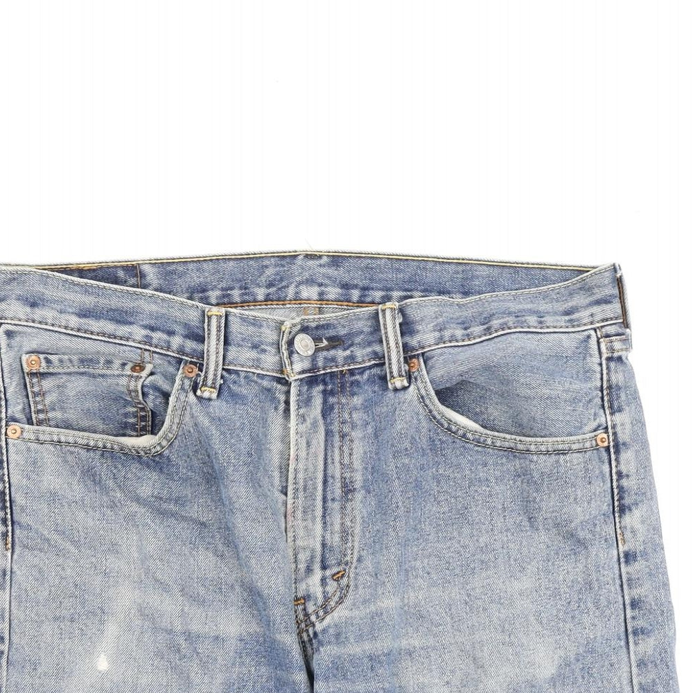 Mens Blue Cotton Bermuda Shorts Size 33 in Regular Button