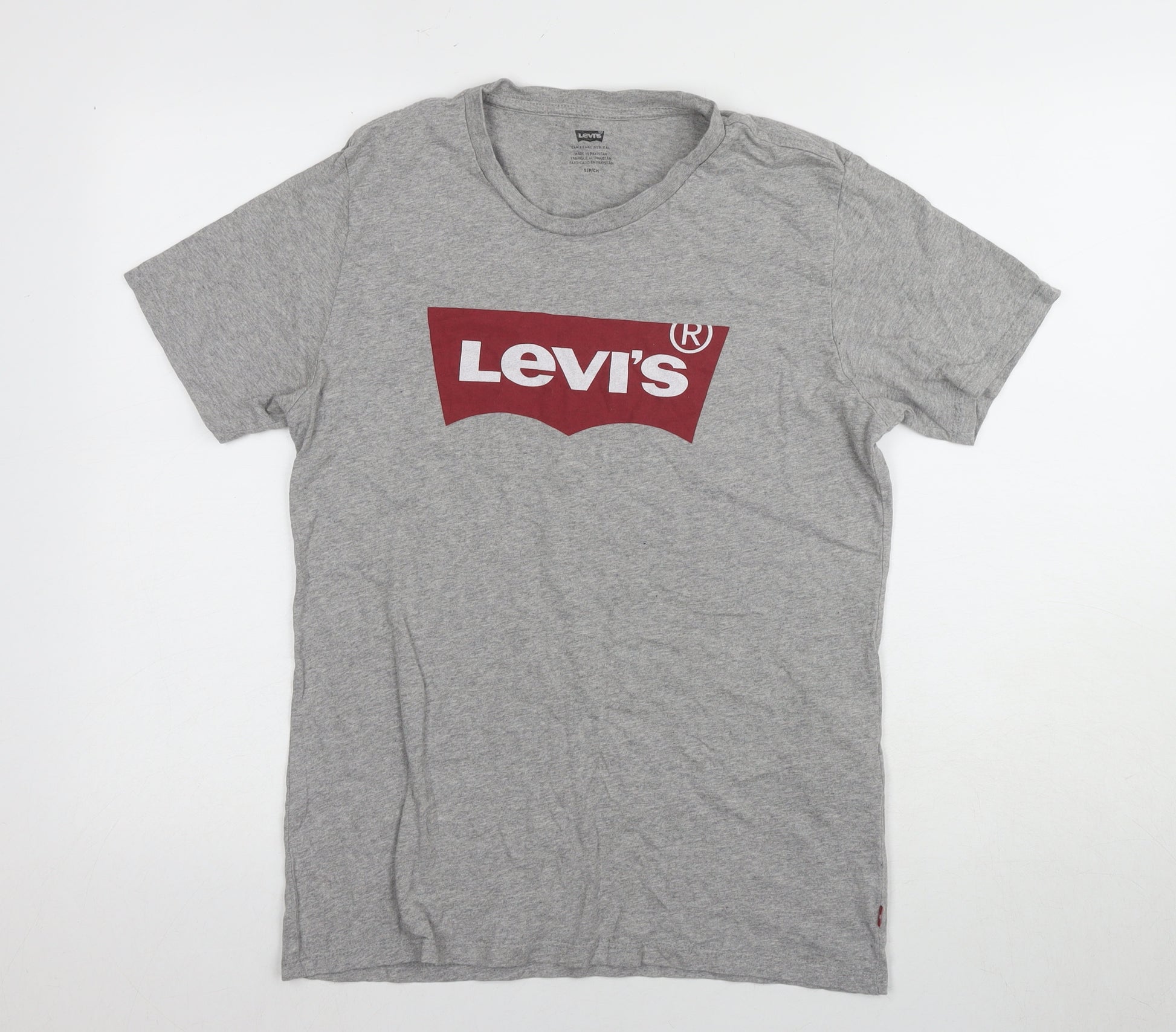 Classic Levi's grey t-shirt in size S, perfect for any casual wardrobe. Featuring a classic crew neck and short sleeves, this shirt is made from 100% cotton for everyday comfort. With its iconic logo print, it adds a touch of timeless style to your outfit. Ideal for all seasons, this jersey fabric t-shirt is machine washable for easy care. Although slightly worn, it remains in excellent condition, offering a perfect blend of fashion and durability, suitable for men seeking a stylish yet relaxed look.