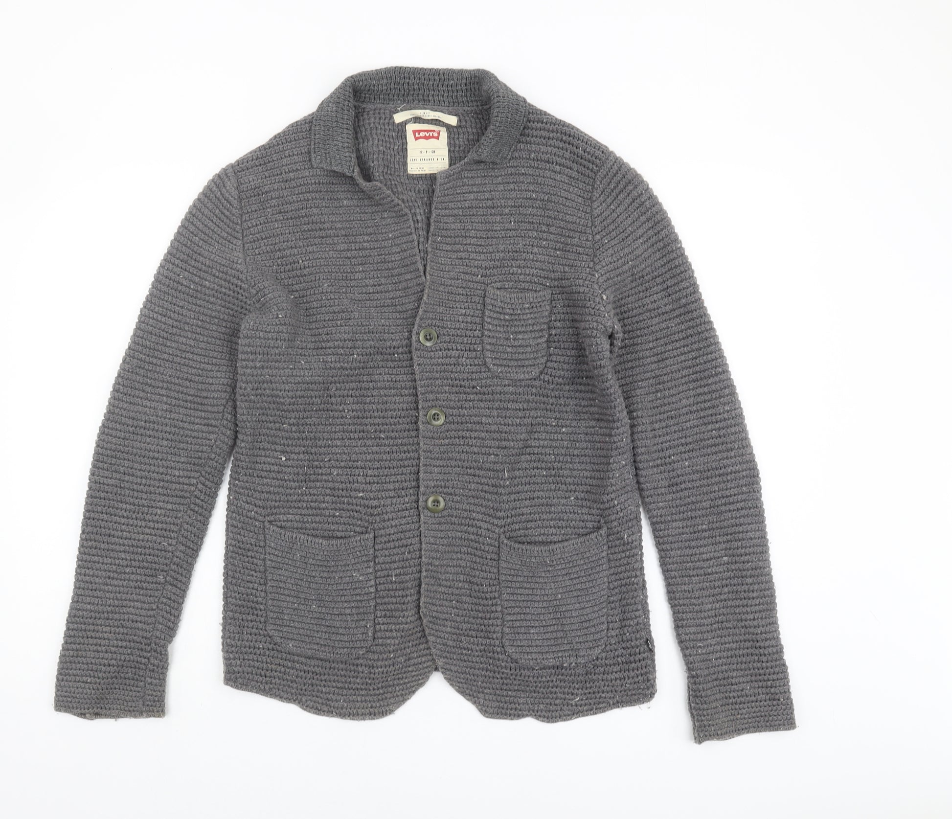 Elevate your casual wardrobe with this Levi's Men's Cardigan, a perfect blend of classic style and modern comfort. Crafted from premium 100% cotton, this grey cardigan offers a soft, chunky-knit texture, making it an ideal choice for the autumn and winter seasons. Designed with a slim fit, it highlights your silhouette while providing ample room for movement.The cardigan features a smart collared neckline and button accents, lending a touch of sophistication to its otherwise relaxed appearance. Practical and stylish, it comes with convenient pockets, adding functionality to its everyday appeal. The clean, no-pattern design ensures versatility, allowing it to be effortlessly paired with a variety of outfits.Whether heading out for a casual day or enjoying a laid-back evening, this cardigan is suitable for any occasion. Its durable knit fabric ensures long-lasting wear, making it a reliable addition to your wardrobe. Embrace the renowned quality of Levi's with this men's cardigan, a true staple for any fashion-savvy man. Secure your piece of this timeless style today at an attractive price point.