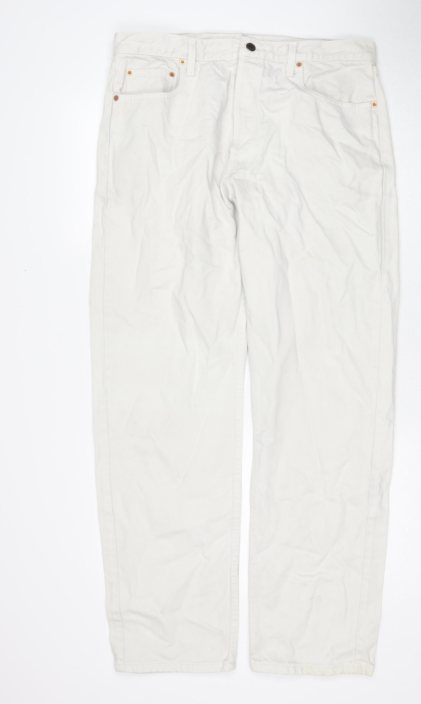 Mens White Cotton Straight Jeans Size 38 in L32 in Regular Button
