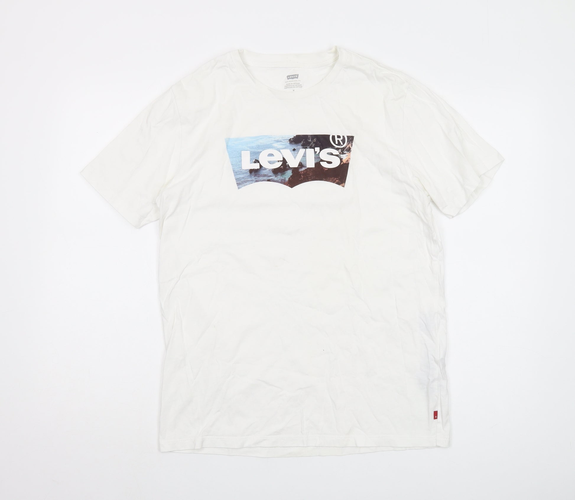 Discover the timeless appeal of this Levi's Men's White Graphic Print T-Shirt, crafted with 100% cotton for a comfortable fit that's perfect for any casual outing. The design features the iconic Levi's logo, lending a touch of understated style to your wardrobe. With its breathable and lightweight material, this short sleeve T-shirt ensures all-day comfort, whether you're running errands or enjoying a day out. The crew neckline and regular fit provide a classic silhouette that's easy to pair with your favorite jeans or shorts. Ideal for those who love a minimalist yet stylish look, this T-shirt is versatile enough to wear across all seasons. Although it shows slight signs of wear, it remains in excellent condition, without any stains, making it a reliable and fashionable addition to your collection. Embrace effortless style with this Levi's staple piece.