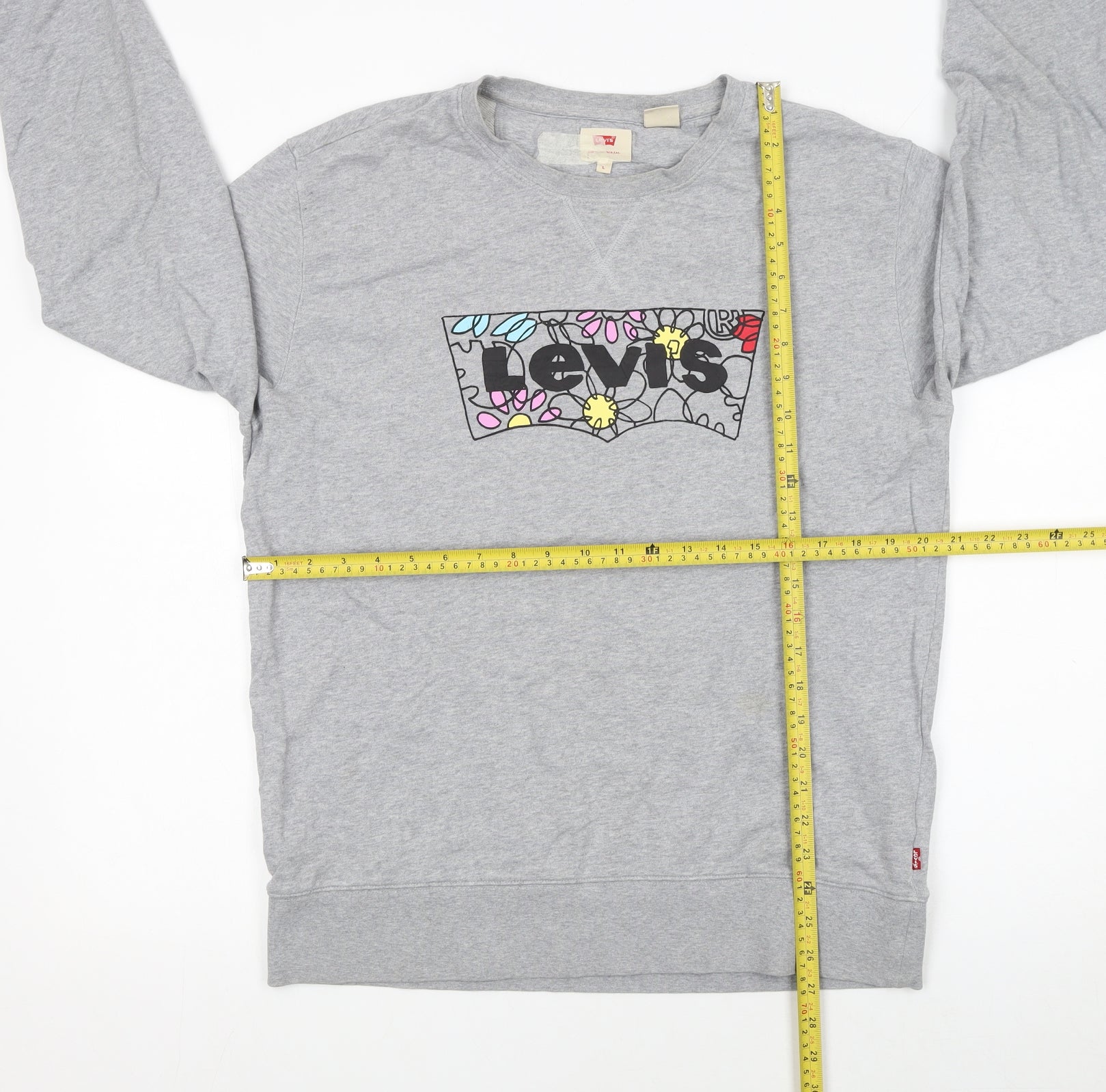 Refresh your casual wardrobe with this Levi’s women’s grey pullover sweatshirt, delivering a perfect blend of comfort and style. Crafted from 100% cotton for the main body, it provides a soft, breathable feel ideal for everyday wear. The sweatshirt’s ribbed trims, composed of 97% cotton and 3% elastane, ensure a flexible and comfortable fit that retains its shape through regular use. Designed with a classic crew neckline and long sleeves, this piece is a versatile essential suitable for all seasons. Featuring Levi’s signature logo decorated with floral accents, it adds a playful and artistic touch to your laid-back look. The heather grey shade makes it easy to style with jeans, leggings, or shorts, creating a timeless off-duty ensemble perfect for travel, casual outings, or relaxed weekends. This sweatshirt offers a regular fit and classic silhouette that flatters a wide range of body types, combining simplicity with the iconic charm synonymous with the Levi's brand. Although pre-owned, it remains in excellent condition with only minor faint marks visible, showing light signs of previous use. Comfortable, stylish, and enduring, this sweatshirt reflects Levi’s trusted craftsmanship in durable cotton construction. Whether worn on its own on mild days or layered under a jacket during cooler weather, this Levi’s sweatshirt ensures effortless style and cosy comfort. A must-have for lovers of contemporary casual wear, it’s the ideal wardrobe staple to keep you looking and feeling great whatever the season.