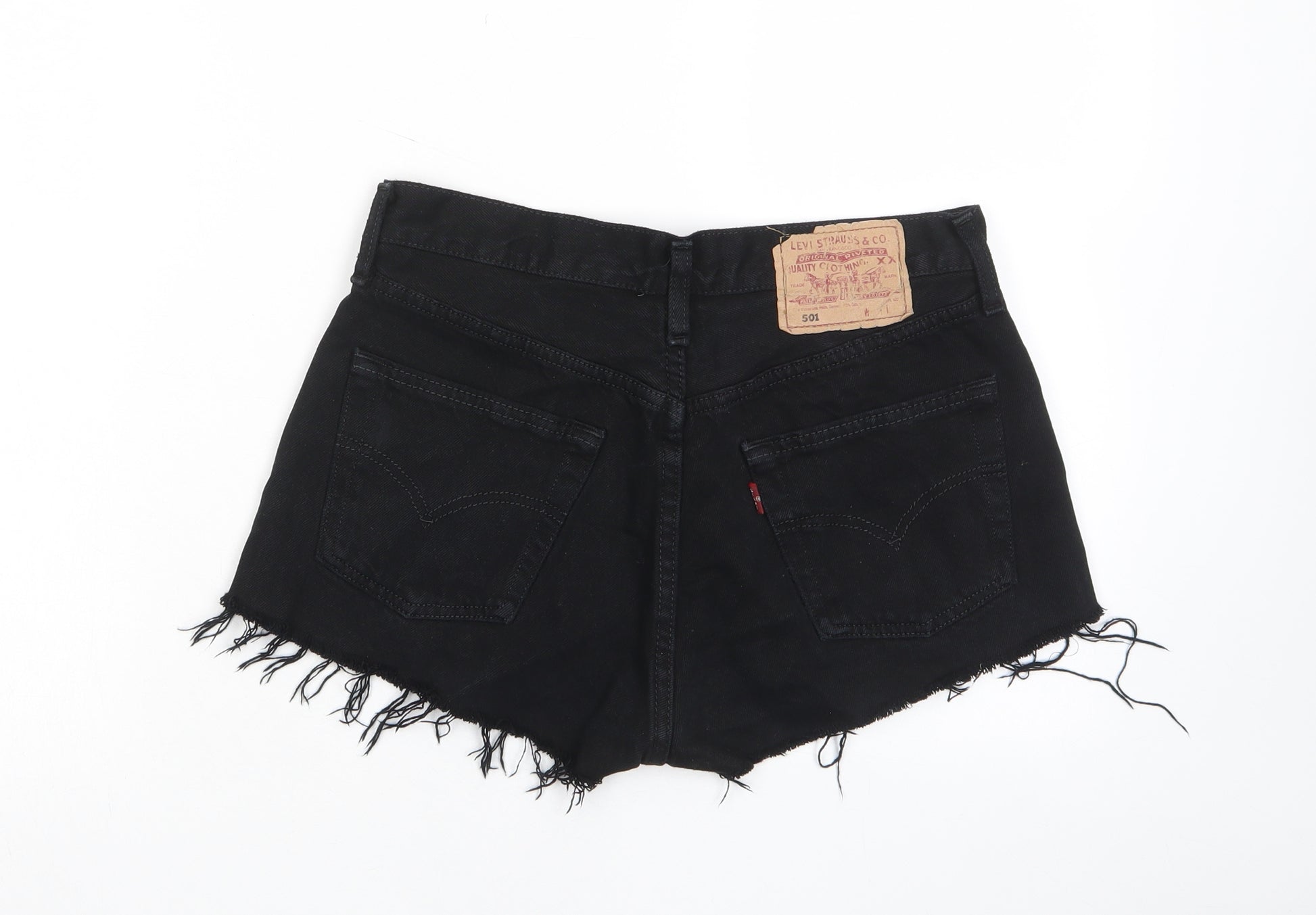 Womens Black Cotton Basic Shorts Size 28 in Regular Zip - Pockets, Belt Loops, Logo