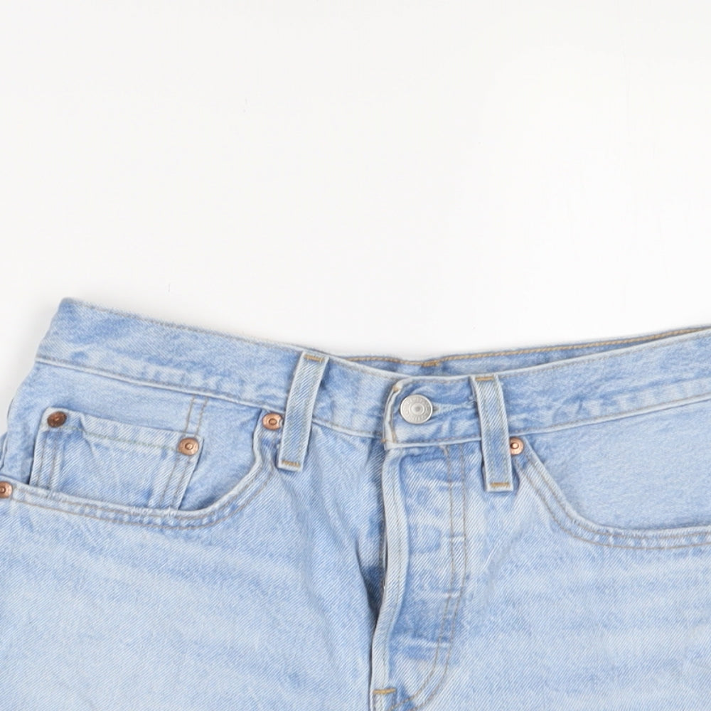 Womens Blue Cotton Basic Shorts Size 26 in Regular Zip