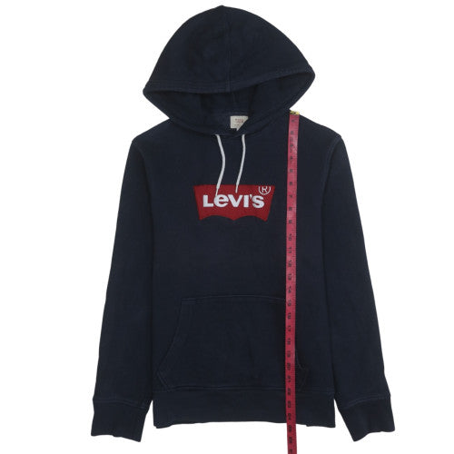 Add timeless comfort and sporty charm to your wardrobe with this Levi’s Women's Navy Pullover Hoodie. Crafted from soft cotton-rich fabric, this hoodie is perfect for casual days, weekend lounging, or layering on cooler evenings. Designed with a classic pullover style, it features a spacious hood with drawstring ties and a roomy front kangaroo pocket, offering both practicality and style. The navy blue tone creates a sleek, versatile base, while the bold red Levi’s logo across the chest adds an unmistakable touch of heritage branding. Made from breathable and durable material, it’s comfortable to wear across all seasons. The ribbed cuffs and hem ensure a snug fit, preventing drafts while keeping warmth in. With its regular fit design, this sweatshirt provides easy movement and a relaxed shape that flatters a range of body types. Whether paired with jeans or leggings, this hoodie embodies laid-back streetwear elegance with a touch of iconic American style. Ideal for everyday wear, outdoor walks, or cosy evenings, it’s a reliable addition to any wardrobe. In excellent condition with minimal signs of wear, this Levi’s hoodie brings quality, comfort and effortless style together — a perfect choice for those who value simplicity with a branded edge.