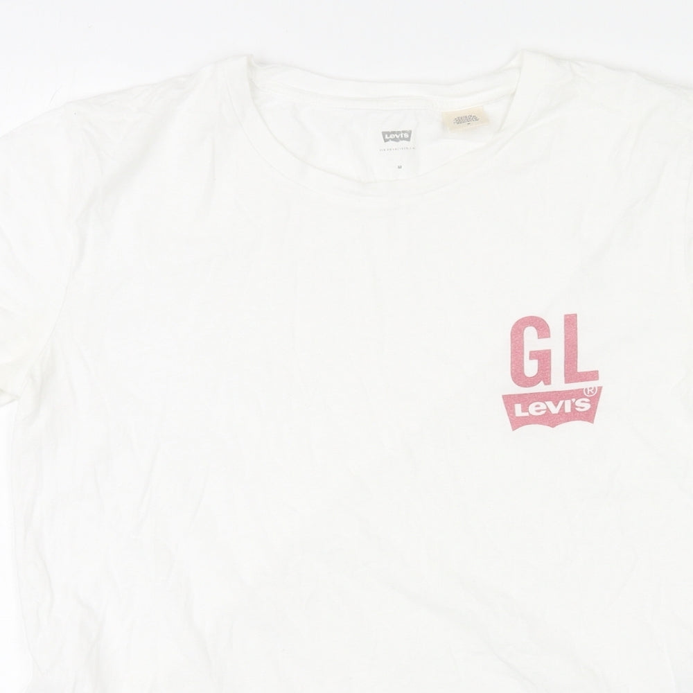 Womens White Cotton Basic T-Shirt Size M Crew Neck