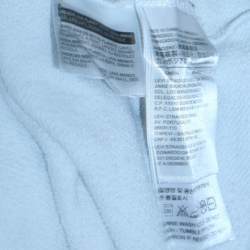 Add a touch of classic American style to your casual wardrobe with this Levi’s Women’s White Pullover Hoodie. Expertly crafted from a soft cotton-blend fabric, this hoodie offers exceptional comfort with a breathable and lightweight feel, making it ideal for year-round wear. Featuring the timeless Levi’s logo boldly printed across the chest in red, black, and white, this piece combines iconic design with everyday practicality. The hoodie comes in a relaxed pullover style with an adjustable drawstring hood, long sleeves, and ribbed cuffs and hem for a snug fit. Its clean white colourway makes it wonderfully versatile and easy to pair with jeans, leggings, or joggers whether you’re heading out for a casual day, lounging at home, or travelling in comfort. The soft interior ensures warmth without being bulky, while the high-quality stitching reflects Levi’s dependable craftsmanship. Perfect for layering during cooler months or wearing on its own in spring and autumn, the hoodie also features a minimalist silhouette with no front pockets, keeping its look modern and streamlined. This classic Levi’s hoodie is a staple piece that seamlessly blends fashion with function, appealing to those who admire heritage branding with a contemporary edge. Whether you wear it for off-duty weekends, relaxed outings, or gym cover-ups, this white hoodie will become a go-to item in your collection. It’s a stylish yet practical piece that speaks to Levi’s long-standing tradition of design excellence and durability. In excellent used condition, it shows minimal signs of wear, maintaining its crisp white tone and vibrant logo. A perfect mix of comfort, quality, and brand prestige, this pullover offers the perfect balance between effortless style and everyday ease.