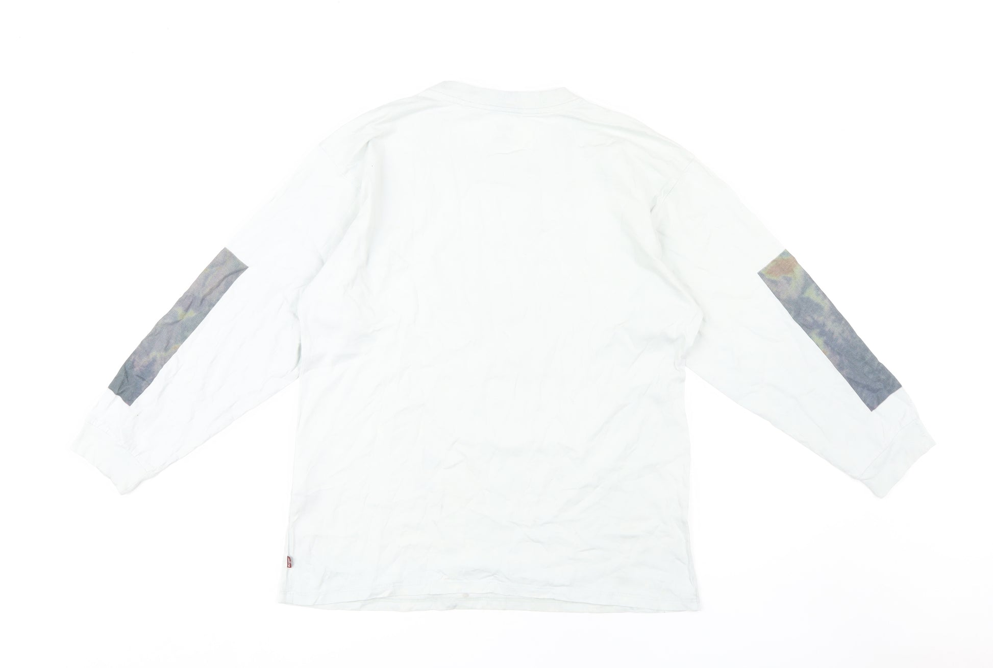 This Levi's classic women's T-shirt is an essential addition to your casual wardrobe. Crafted from 100% cotton, it promises comfort and breathability, making it the perfect choice for all seasons. The solid white colour gives it a versatile style that pairs effortlessly with any outfit, while the long sleeves add a touch of elegance and warmth for cooler days. Designed for regular fit, this T-shirt features a crew neck and classic fitted sleeves, accentuating its basic style without compromising on comfort. Manufactured with care, this Levi's T-shirt is perfect for casually chic looks. Whether you're wearing it for a relaxed day out or lounging at home, this T-shirt effortlessly fits into any casual occasion. Despite having some slight wear visible, its overall condition remains excellent, promising durability and longevity. Its machine washable fabric ensures easy care, allowing you to enjoy this Levi's essential time and again. Elevate your wardrobe with this timeless Levi's piece, ensuring you step out in style for every casual engagement.