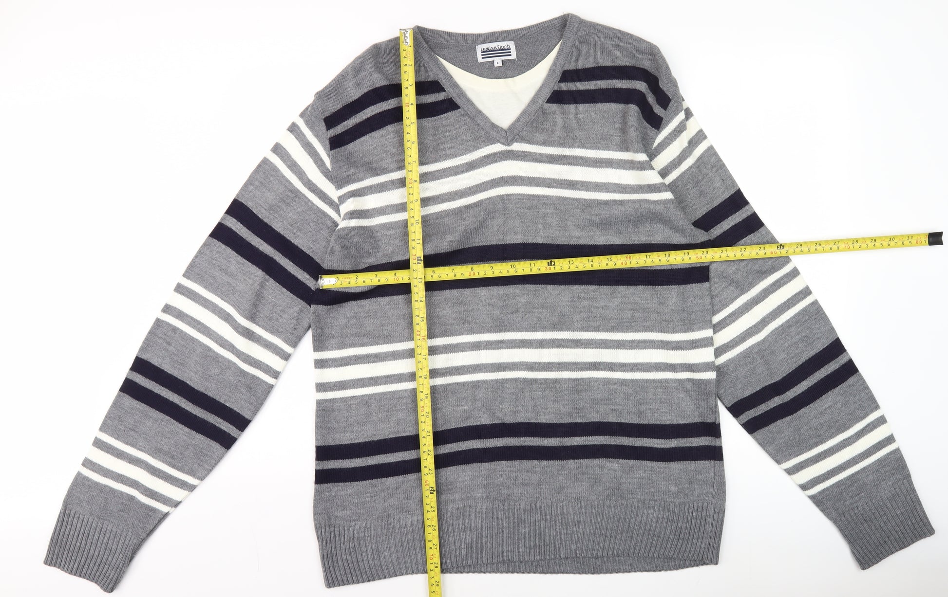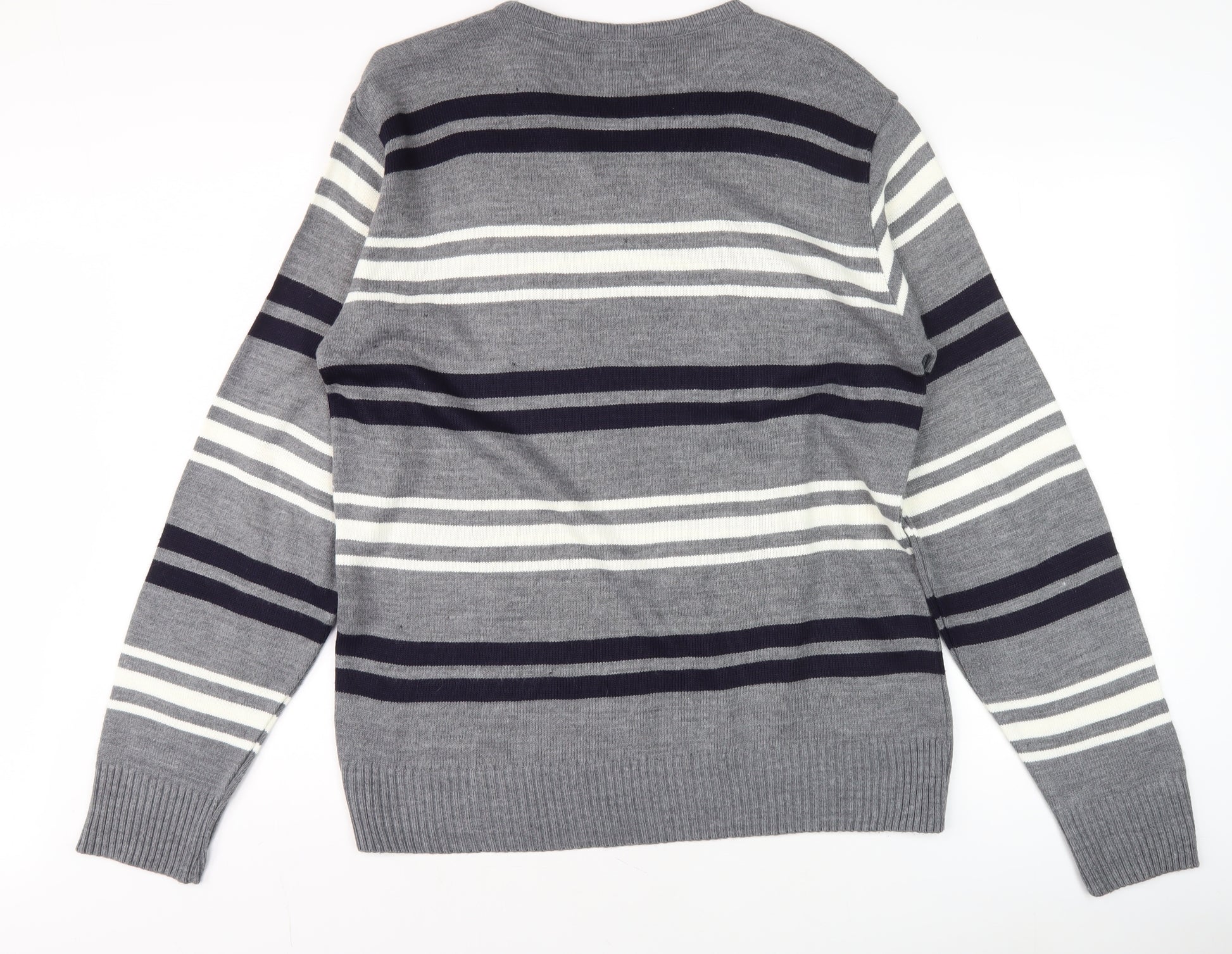 Men’s Grey Striped V-Neck Pullover Jumper L