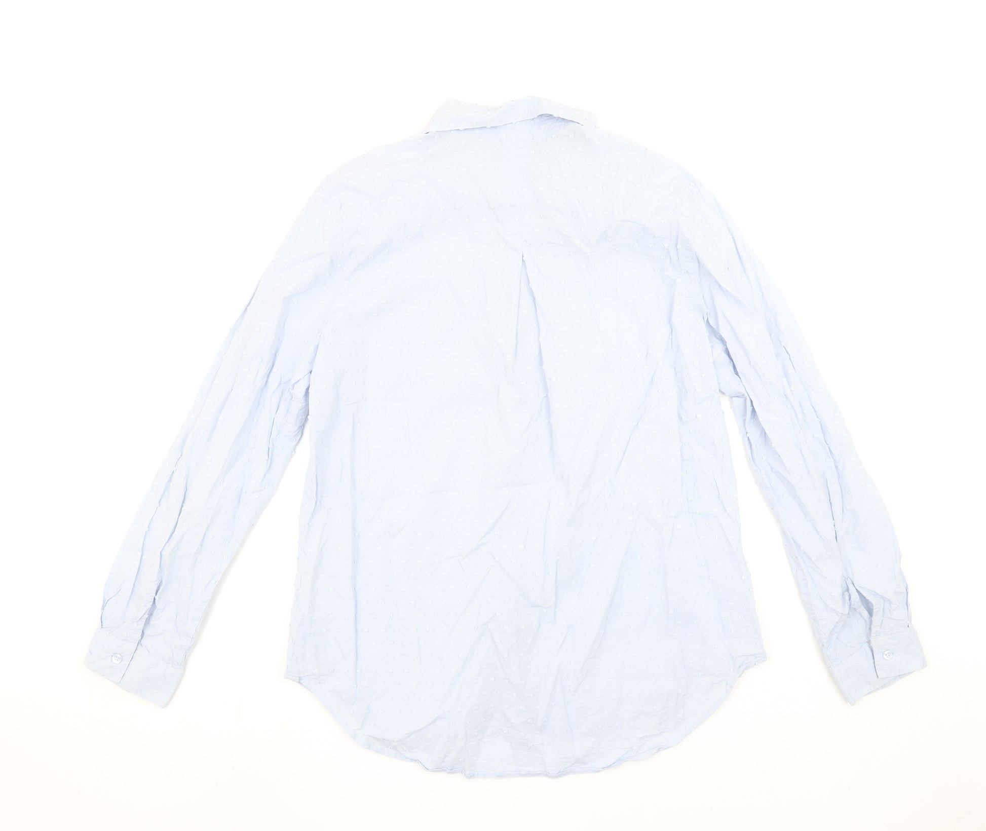 H&M L.O.G.G. Women’s Navy Blue Polka Dot Cotton Button-Up Shirt UK 14