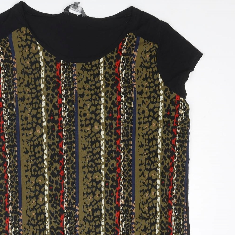 Womens Black Geometric Polyester Basic T-Shirt Size 14 Round Neck