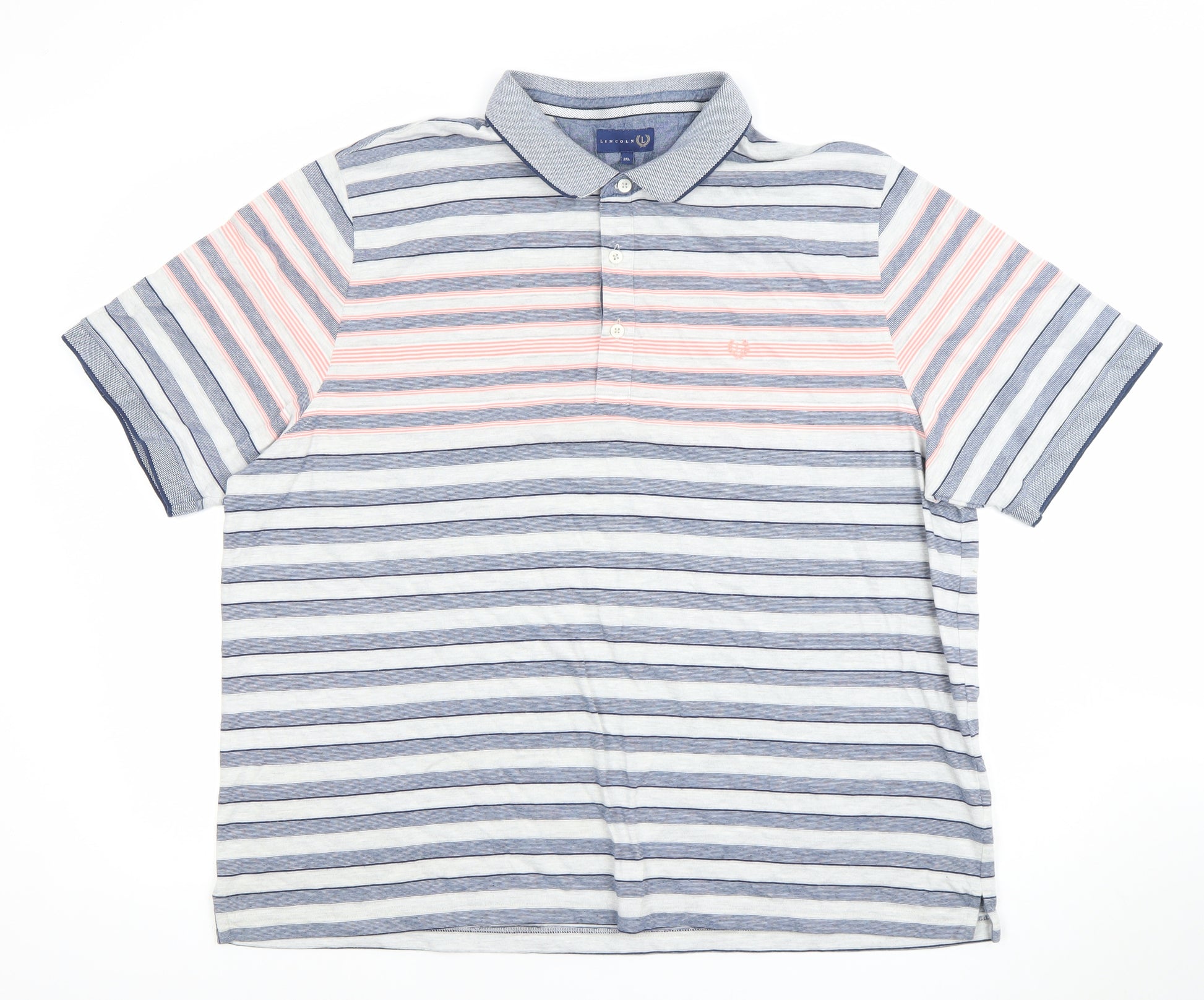 Men’s Blue Striped 3XL Cotton Blend Short Sleeve Polo Shirt