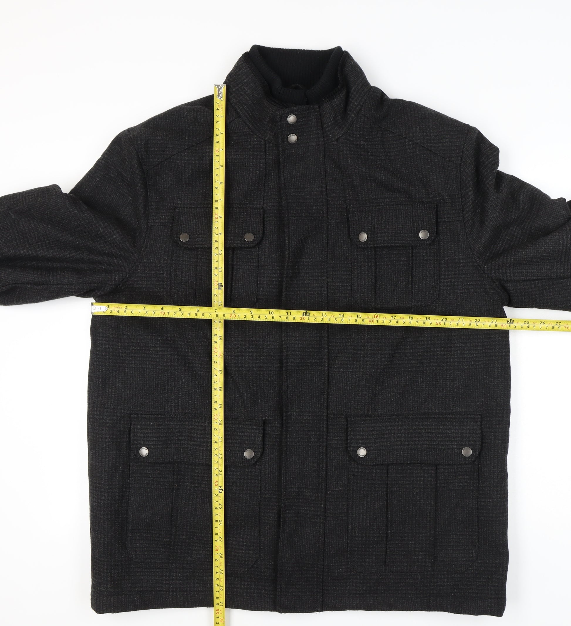 Elevate your wardrobe with the sleek and versatile Lincoln Men's Black Check Jacket, an ideal choice for casual outings and everyday wear. Crafted from a premium blend of polyester, acrylic, wool, nylon, and viscose, this jacket promises durability and comfort while ensuring you stay in style. The checked pattern adds a touch of sophistication, making it suitable for multiple occasions. Its stand-up collar offers a modern twist, making it a perfect addition to your autumn and winter wardrobe. This jacket features a fully lined interior, ensuring warmth and comfort throughout the seasons. Designed for regular fit, it allows freedom of movement while maintaining a chic silhouette. The material composition not only ensures a soft feel against the skin but also makes it easy to maintain, being machine washable. This piece promises to be a reliable staple for any fashion-forward individual seeking comfort and style in one package. Boasting a casual appeal, it seamlessly complements jeans or chinos for an effortlessly stylish look. Whether you're off to a casual day out or running errands, this Lincoln jacket is your go-to choice for unmatched elegance and versatility. Priced competitively at £45.00, this jacket offers excellent value for quality and design, making it a must-have addition to your collection.