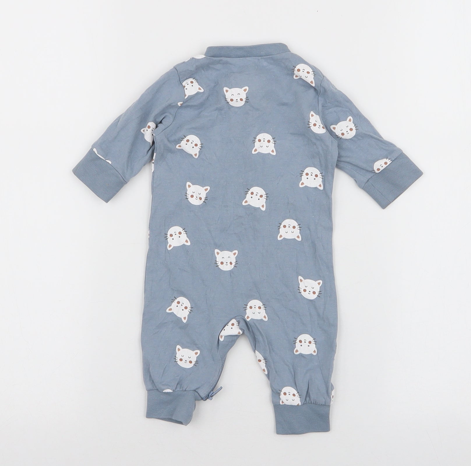 Boys Blue 100% Cotton Babygrow One-Piece Size Newborn Zip - Cats