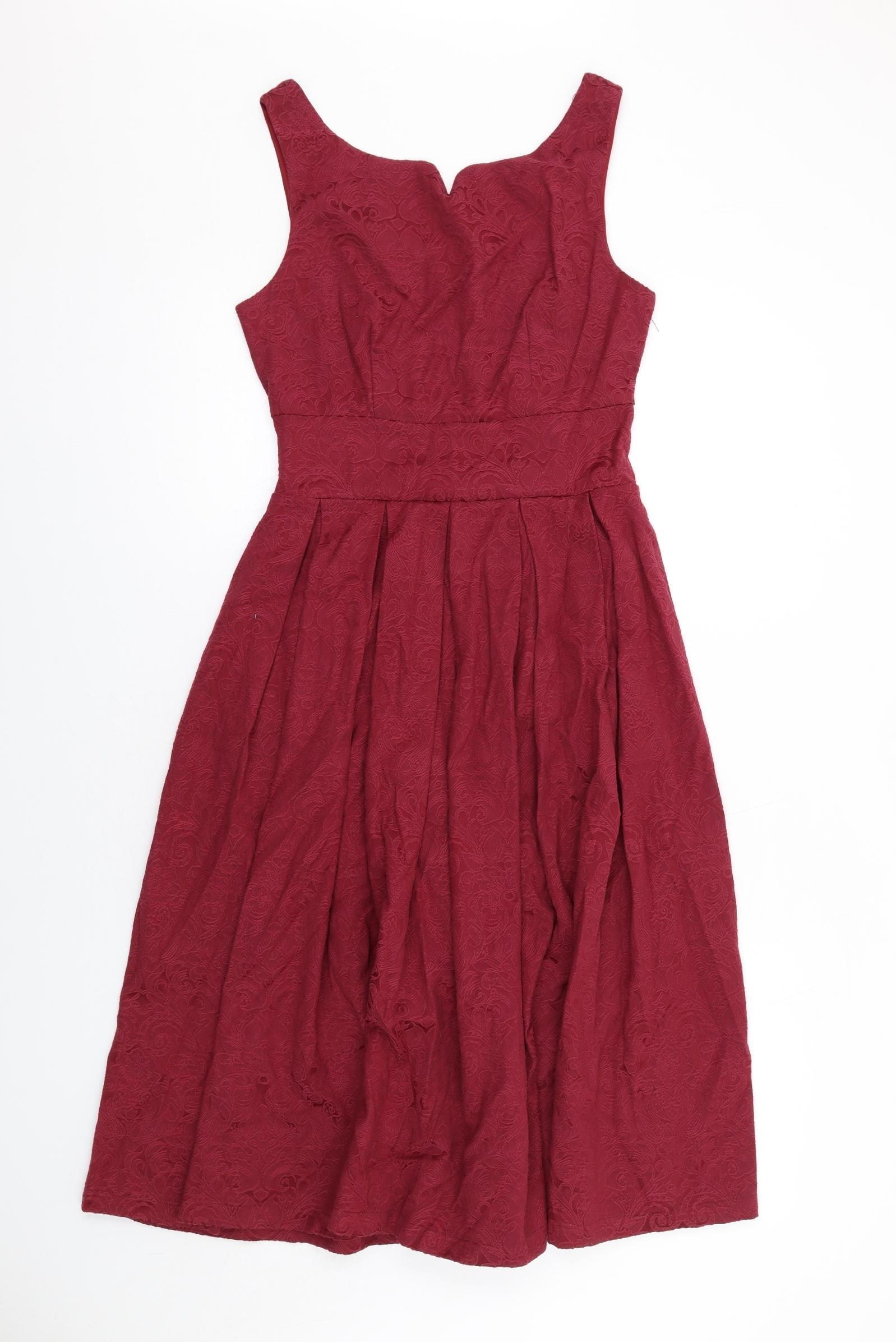 Womens Red Polyester Trapeze & Swing Size 8 Round Neck Zip