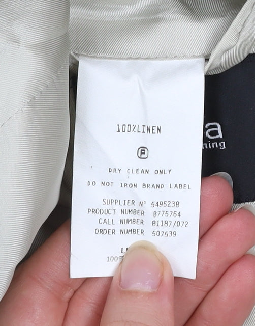 This Linea men’s beige blazer is a stylish addition to any modern wardrobe, offering a sophisticated yet relaxed look ideal for spring and summer wear. Crafted from 100% linen, the blazer provides a lightweight and breathable feel, ensuring comfort on warmer days. The blazer is cut in a regular fit with a classic single-breasted design, featuring a three-button front and notch lapels for a timeless, versatile aesthetic. Perfectly tailored with inner pockets and a double-vented back, it allows for ease of movement and a flattering silhouette whether you’re attending a wedding, a business meeting, or a formal evening event. The beige tone pairs effortlessly with a wide range of shirts and trousers, lending itself to both business and leisure dressing. The jacket’s subtle natural texture adds a touch of refinement while maintaining a contemporary, laid-back appeal. Fully lined for structure and durability, it ensures lasting wear and a polished finish. Though pre-owned, it remains in excellent condition, showing only minor creasing consistent with gentle use. This Linea linen blazer is perfect for the man who values classic tailoring with a touch of casual elegance. Pair it with chinos for a smart-casual daytime look or wear it over tailored trousers for a more formal impression. Designed to bridge relaxed sophistication with everyday practicality, it stands as a dependable and stylish piece for any occasion. A perfect option for warm-weather events, this beige linen blazer from Linea adds an effortlessly refined touch to any outfit.