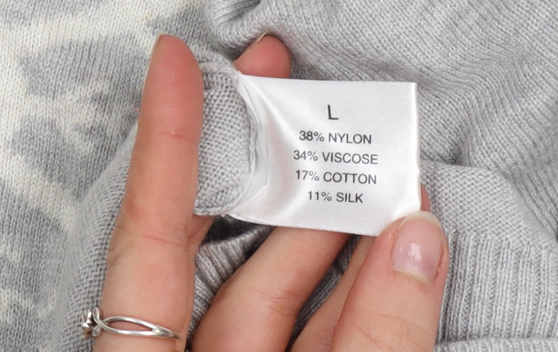 Women Grey Snowflake Pullover Jumper Size L Winter Knit