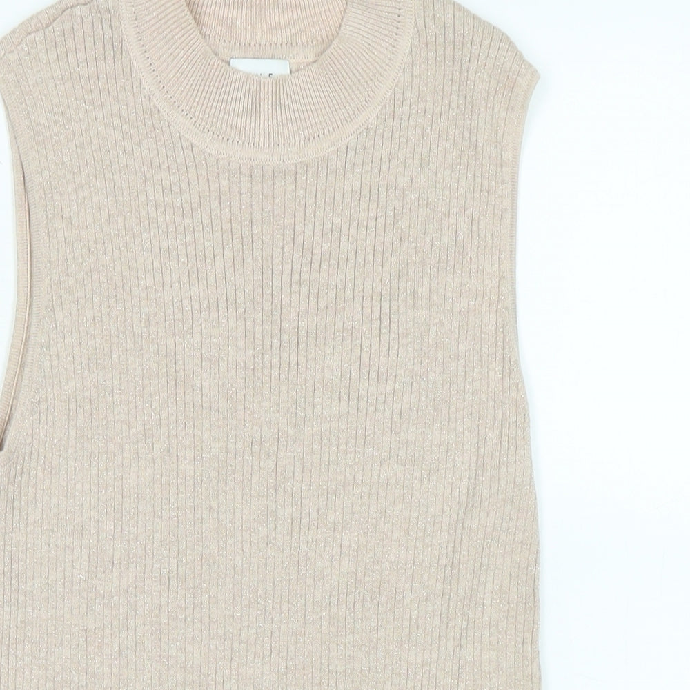 Womens Beige Mock Neck Polyester Vest Jumper Size 12