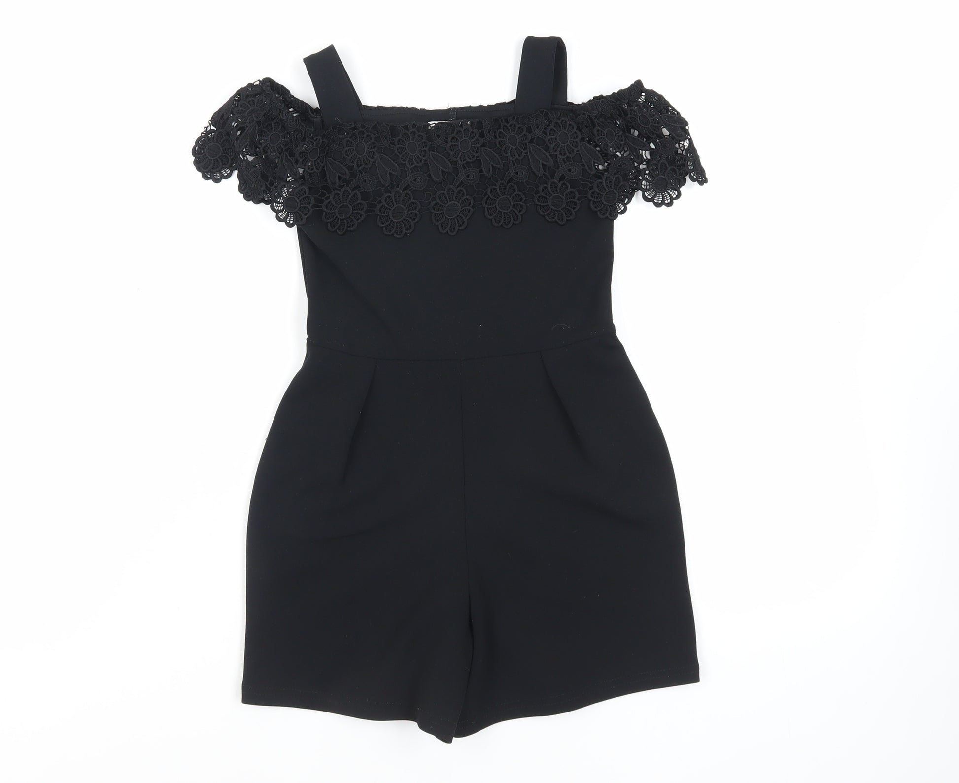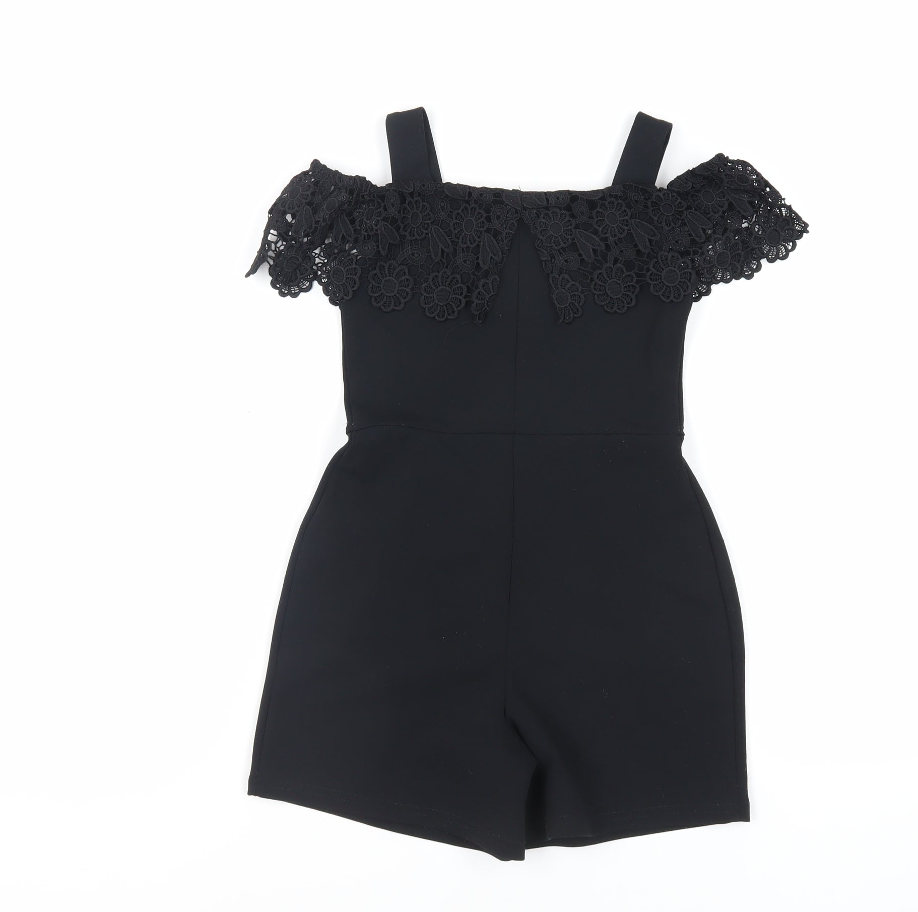Girls Black Polyester Playsuit One-Piece Size 5-6 Years Pullover - Crocheted Lace Detail