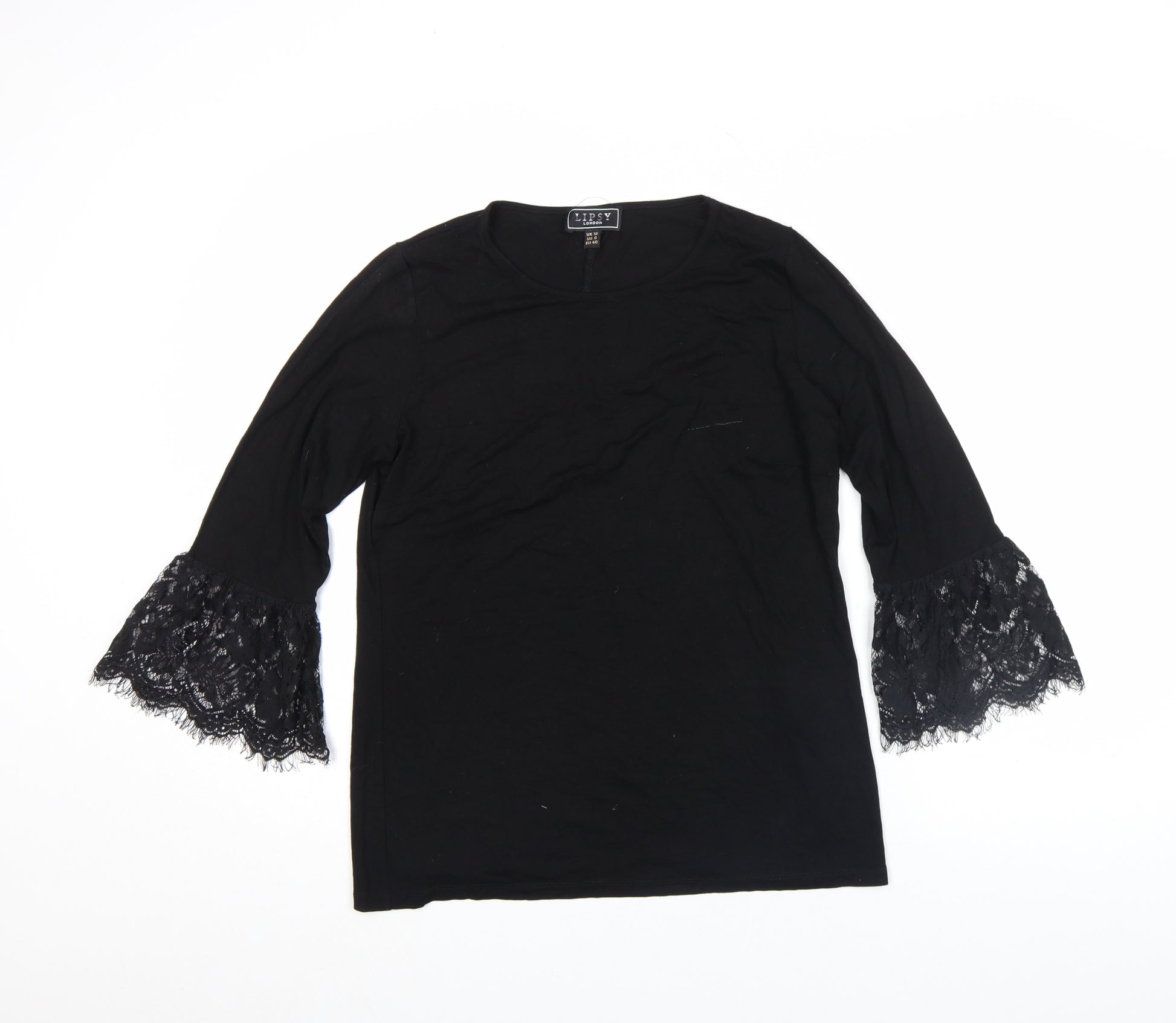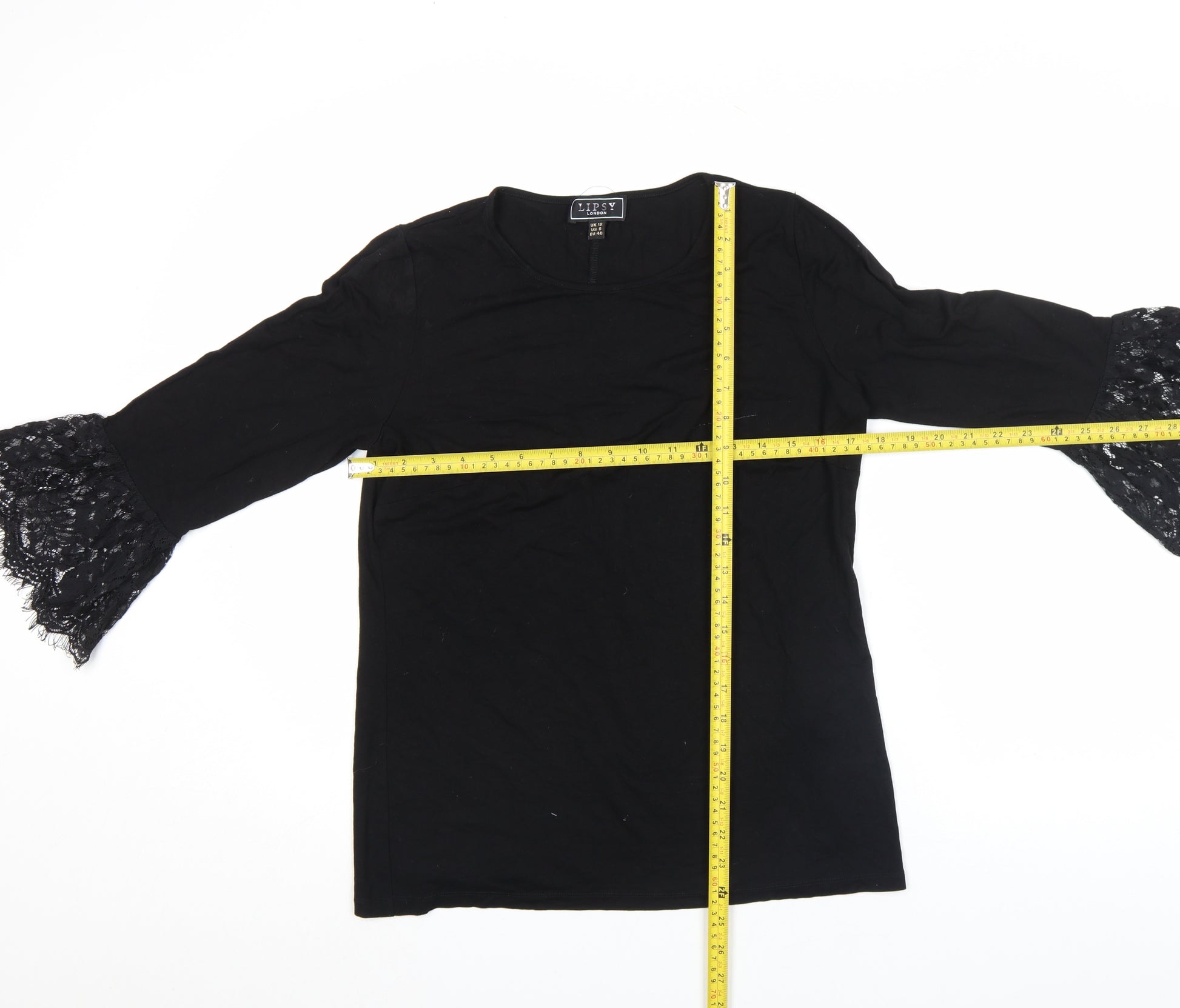 Women's Black Lace Bell Sleeve Tunic Blouse Size 12
