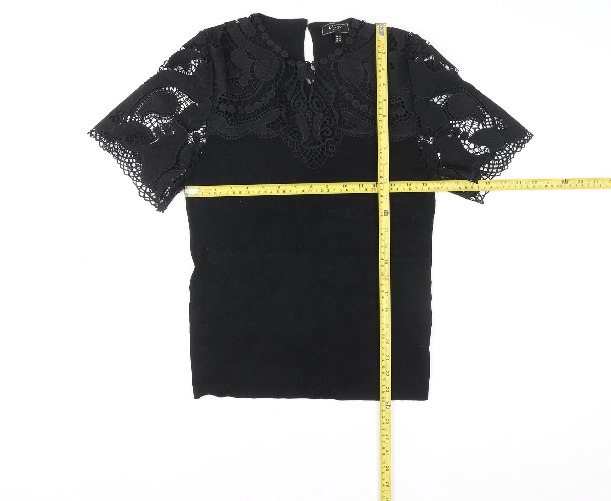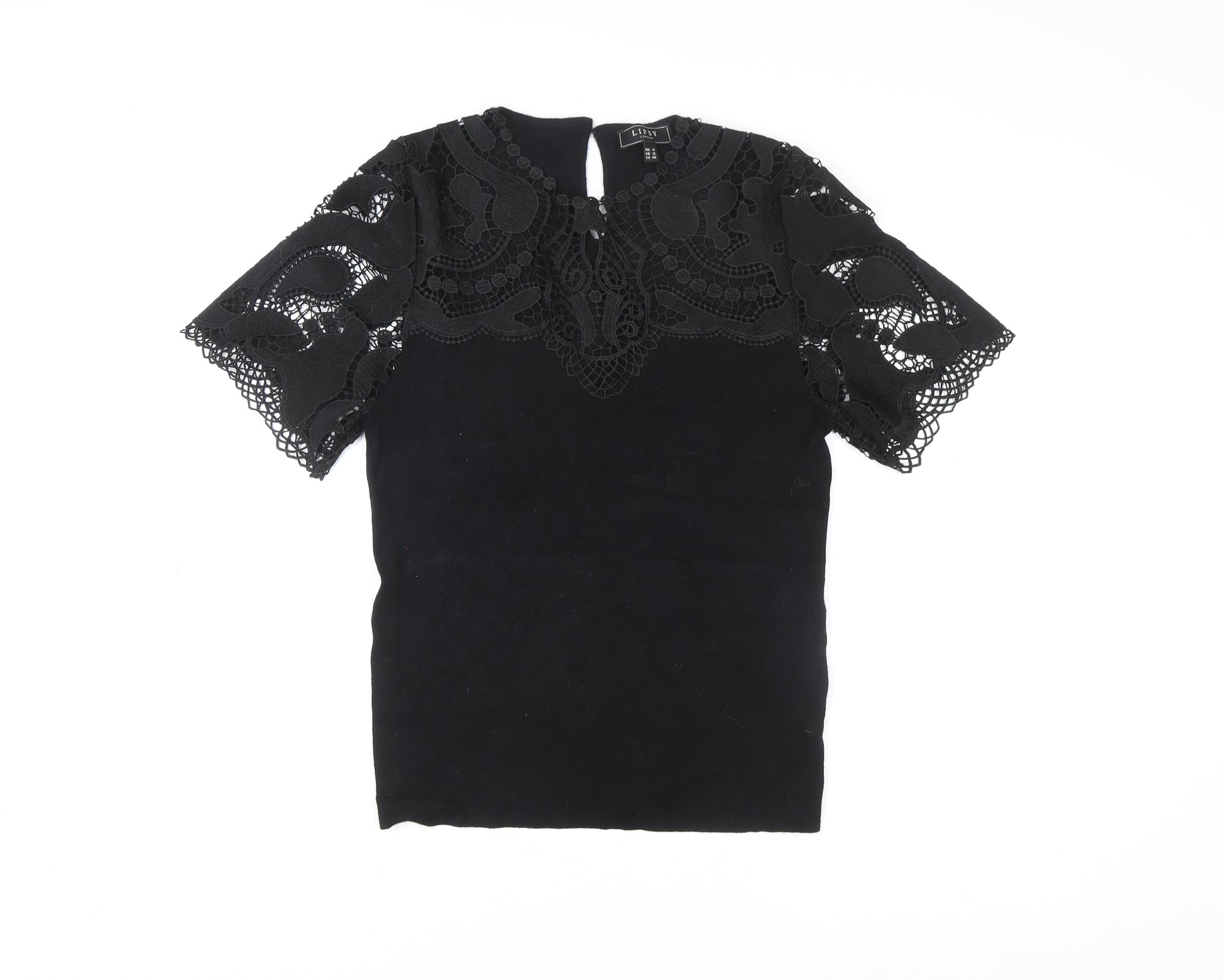 Add a touch of chic sophistication to your wardrobe with this elegant black lace blouse from Lipsy London. Designed with a flattering short sleeve silhouette and intricate lace detailing across the neckline and sleeves, this piece offers a refined, feminine look perfect for multiple occasions. Crafted in a soft blend of cotton and polyester, the blouse feels comfortable against the skin while maintaining its structured shape for a sleek finish. The crew neckline is accentuated with delicate cutwork lace, adding visual texture and highlighting the shoulders beautifully. A small button fastening at the back neckline provides an easy, refined closure. This stylish piece is equally suited for casual days with jeans or dressier evenings paired with a skirt or tailored trousers. Ideal for spring through autumn wear thanks to its breathable yet elegant design, this top embodies Lipsy’s signature balance of contemporary style and classic appeal. Whether you’re heading out for a daytime event, an evening dinner, or simply want to elevate a casual outfit, this versatile blouse offers the right mix of comfort and sophistication without overstatement. The soft, lightly lined lace sleeves create an airy, feminine effect, while the classic cut ensures timeless appeal. A wardrobe staple that effortlessly transitions from day to night, this Lipsy top promises enduring style and comfort, making it a favourite addition to your collection.