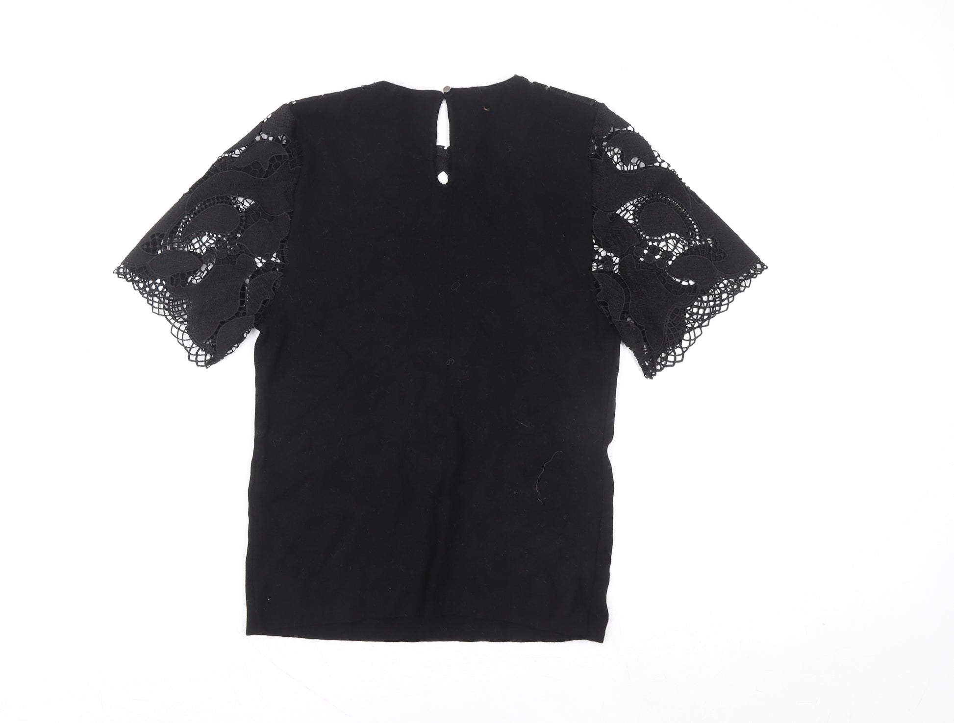 Women Black Lace Short Sleeve Blouse Size 12 Elegant Top