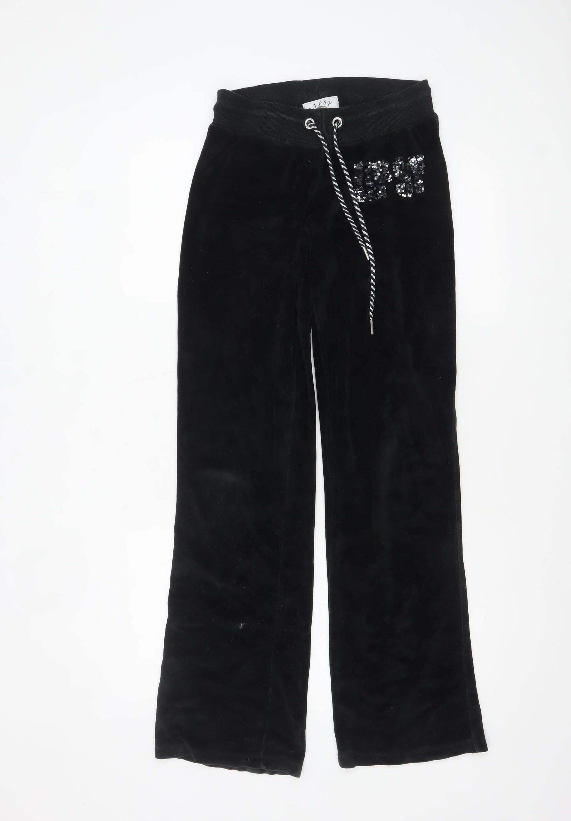 Women Black Velour Sequin Logo Sweatpants Size 8